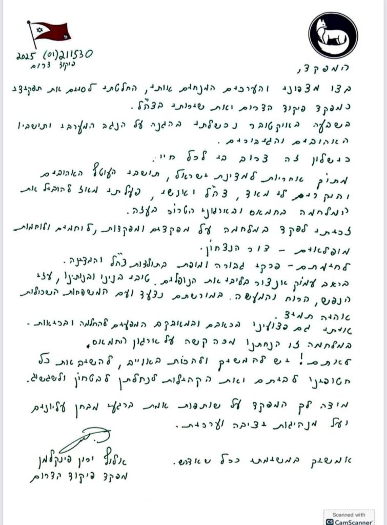 In his resignation letter, Major General Finkelman wrote: “On October 7, I failed to defend the western Negev and its beloved and heroic residents.”