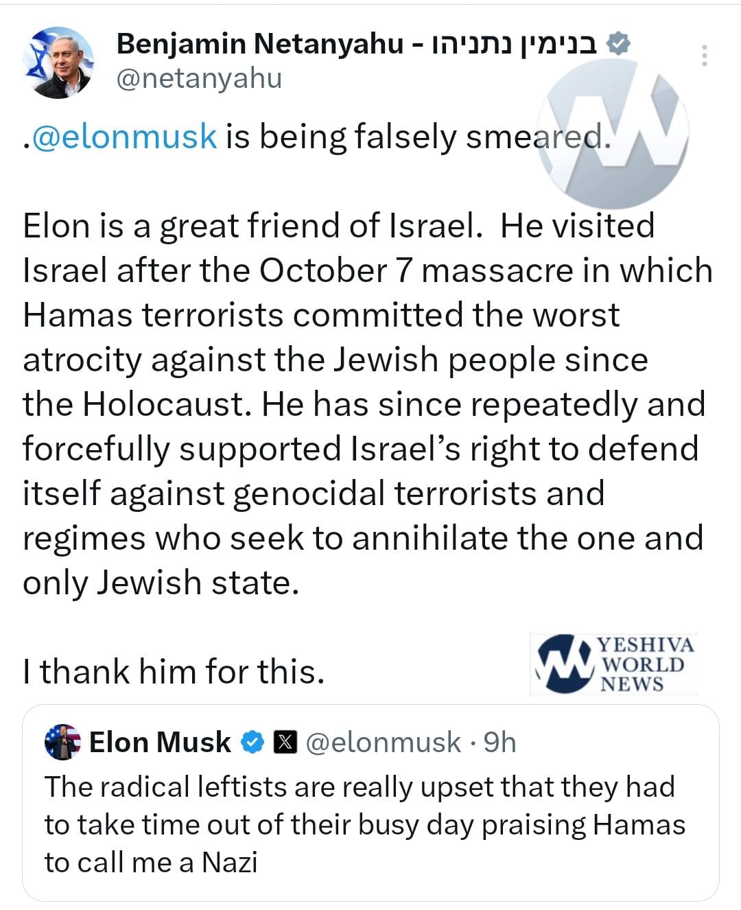 Musk responded to Netanyahu’s support with a brief “thank you” on X, the platform formerly known as Twitter.
