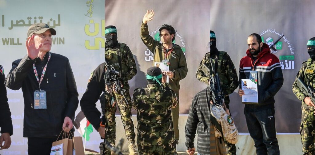 Ofer Calderon, Yarden Bibas and Keith Siegal were released on Shabbos morning after 484 days of captivity in Gaza on Shabbos and are safely in Israel.