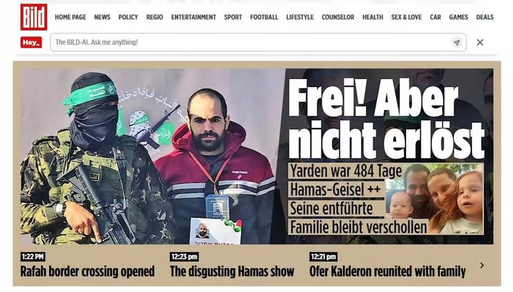 Yarden’s release and the fate of his wife and children were widely covered in the international media. The headline below says: “The look in Yarden’s eyes reveals the pain.”