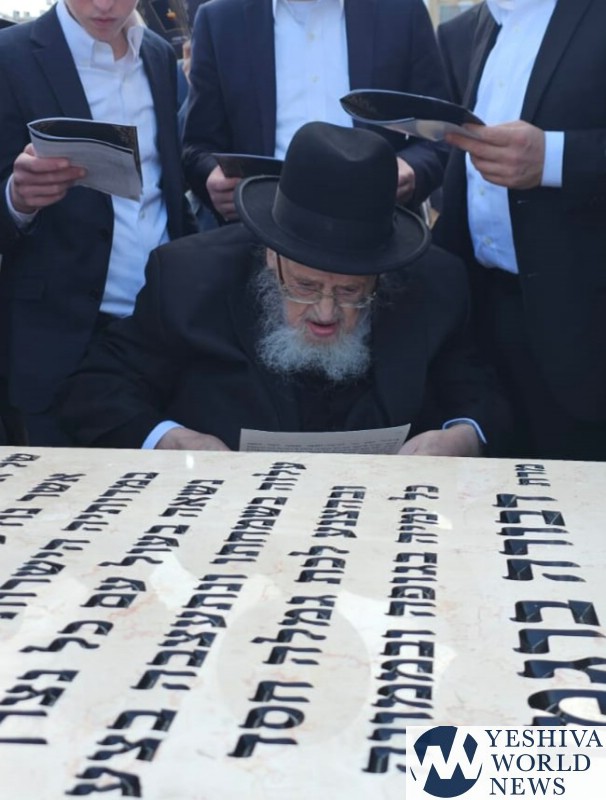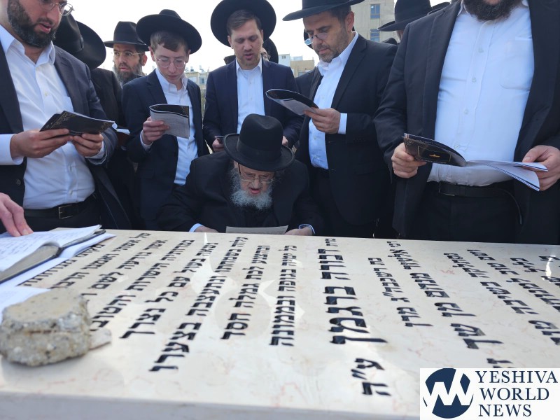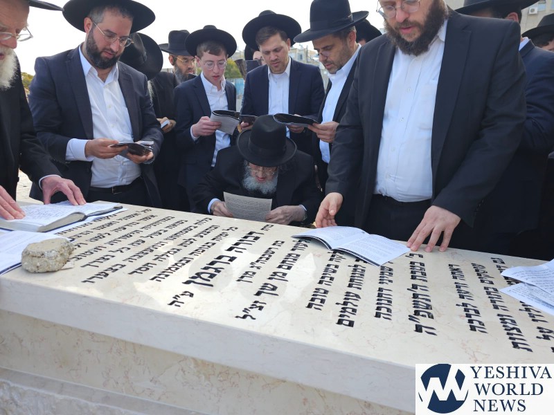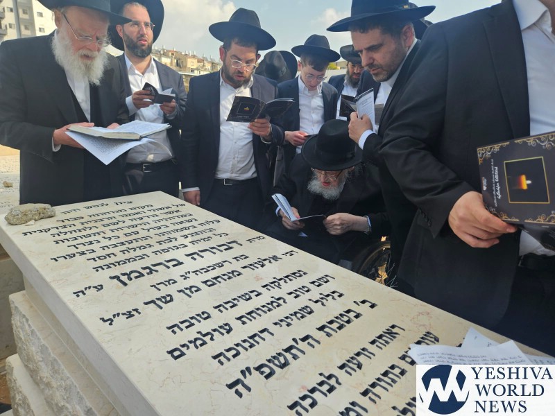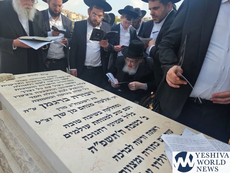 Marking the Shloshim of Rebbetzin Devorah Bergman A”H, her husband, HaGaon HaRav Meir Tzvi Bergman, together with family members and close associates, visited her Kever at the Ponovezh Bais Hakvaros in Bnei Brak.