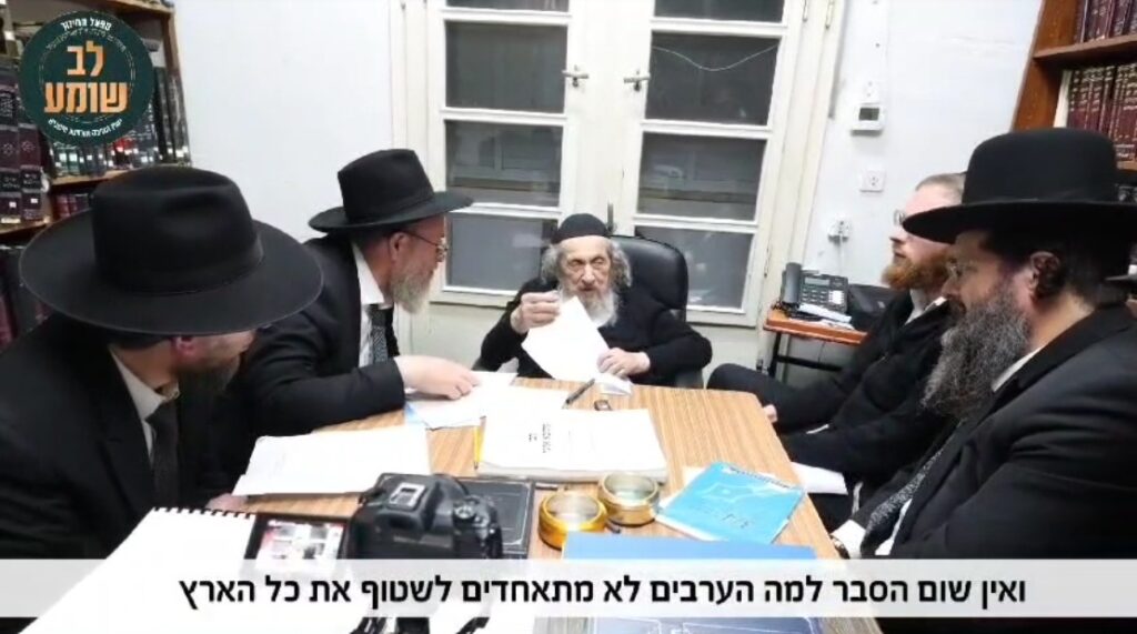In a video of the meeting, the Rosh Yeshivah can be seen saying: “You – the Lomdei Torah are the ones who save [Eretz Yisrael]. There’s no explanation for why the Arabs don’t unite and flood the entire land and rachmana latzlan, kill everyone. There’s no explanation!”