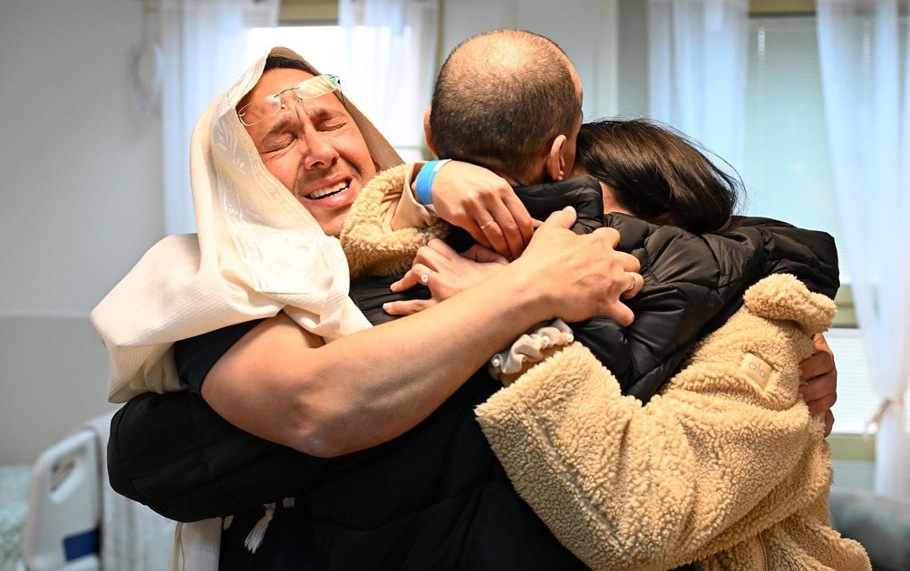 Ohad Ben-Ami reunited with his three daughters and his mother Esther at Ichilov Hospital. His wife Raz, who was abducted on October 7 and released in the November 2023 deal, and his brother Kobi met him at Re’im near the Gaza border.