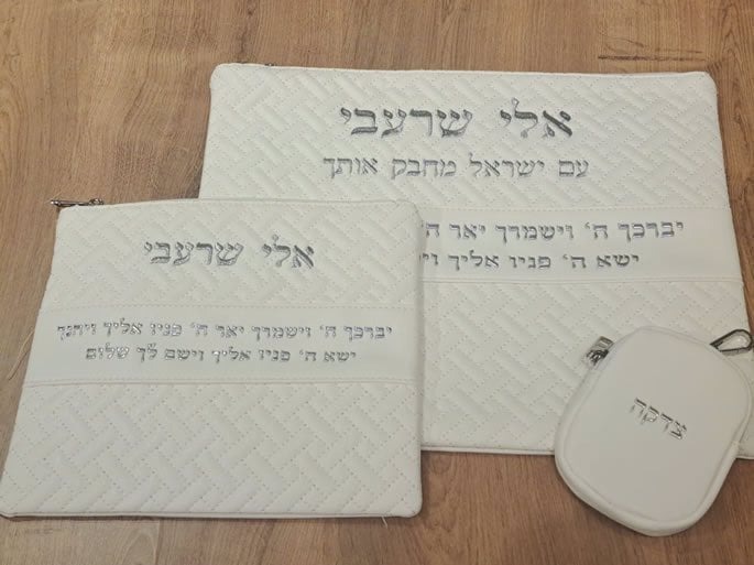Rabbi Shneur Raskin, Chabad shliach to Alfei Menashe who supported Sharabi’s family throughout his captivity, fulfilled the request, acquiring a set of tefillin and custom embroidered tefillin and tallis bags. The tallis bag states: “Am Yisrael embraces you.”