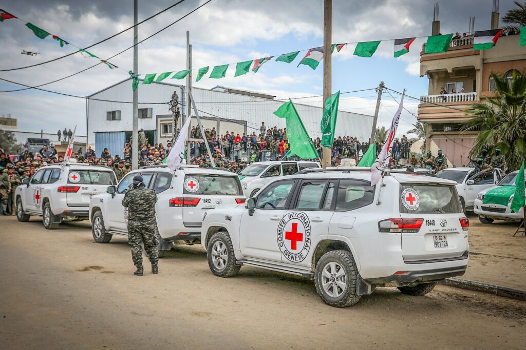 As Israel waited with broken hearts for the four kedoshim to return to Israel, Hamas prepared a depraved ceremony in Khan Younis. The barbaric handover ceremony began at about 9:20 a.m. to the sounds of the cheering, clapping and whistling of the delighted audience. The coffins were handed over to the Red Cross, who transported them to a meeting point in the Strip where IDF forces were waiting.