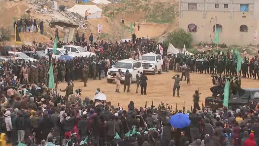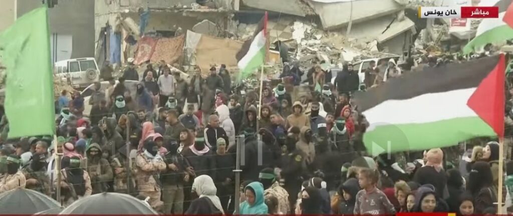 To quote the various מפרשים על ספר ישעיהו:- Not 1 single ounce of anti-semitism since בריאת העולם including even just nasty gestures, shall go unpunished, so these gazans better get petrified as to how much more punishment shall be awaiting them with these cruel handover Ceremonies, in addition to everything else:- be it in this lifetime or next world or during our future גאולה.