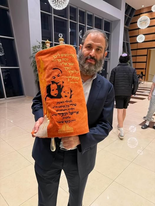 Shai Graucher reached out to members of the Palm Beach shul in Florida – HaRav Leibel Shmotkin, HaRav Moshe Sheiner, Dovid Siegel, and Mordechai Shapiro – who in an unbelievable act of zerizus and ahavas Yisrael, immediately donated two Sifrei Torah, one for Ori Danino, H’yd and the other for Shiri, Ariel and Kfir Bibas, H’yd.