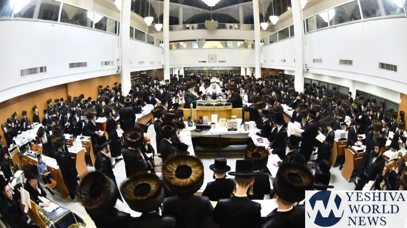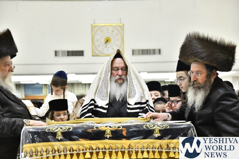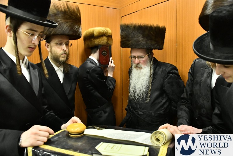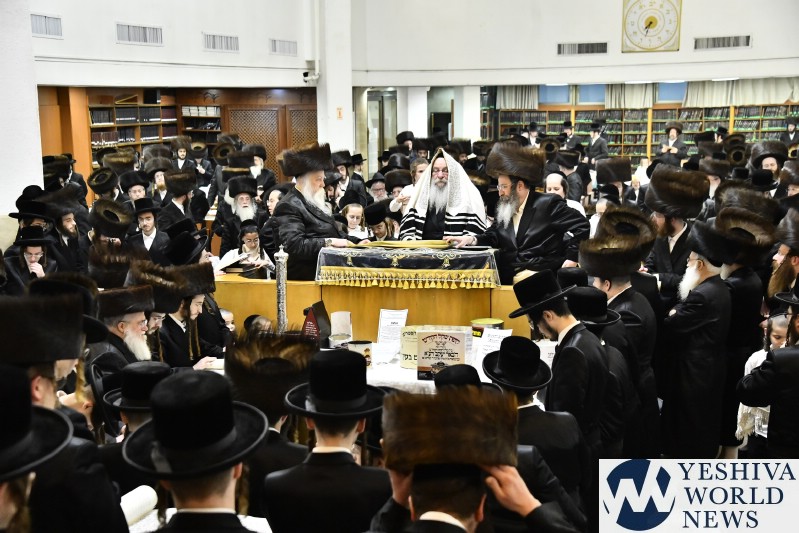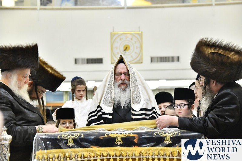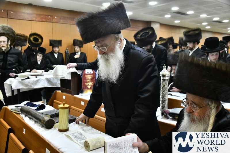 PHOTOS: Nadvorna Rebbe By Megilah On Purim Night (Via Shuki Lerer For YWN)