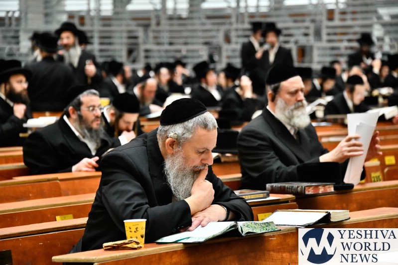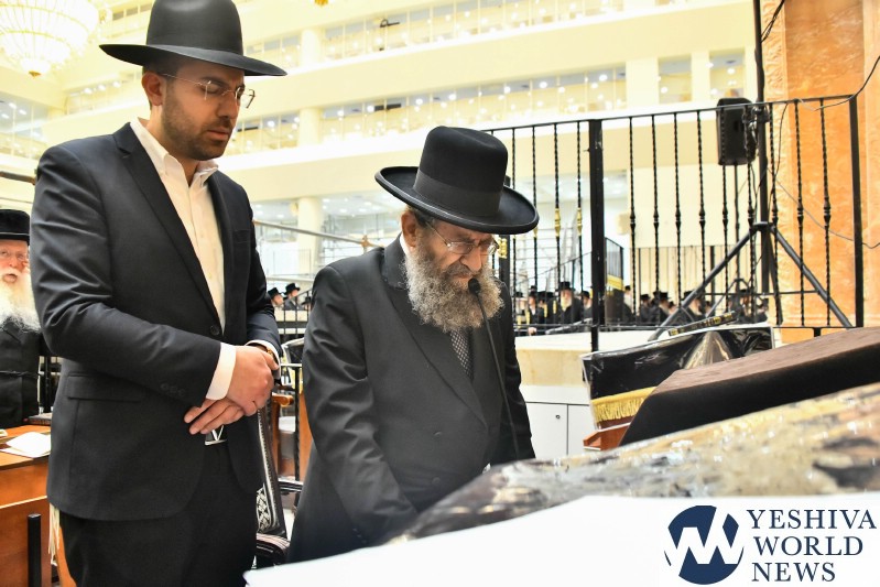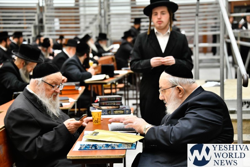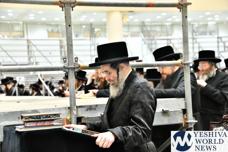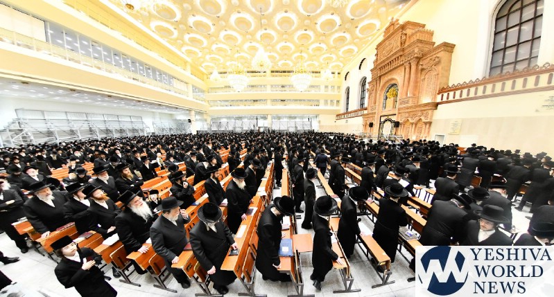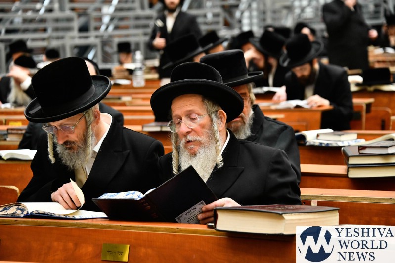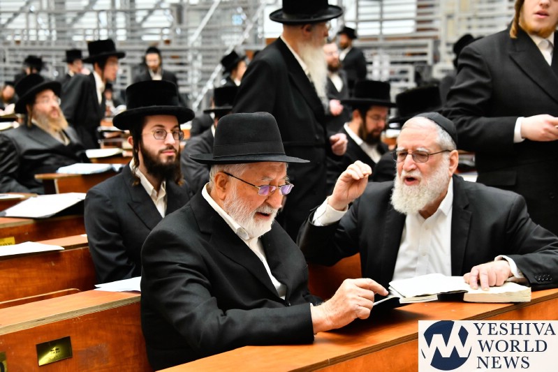 The Vishnitzer Rebbe from Bnei Brak is battling a serious illness, and is undergoing a major surgery today (Monday). There is a Yom Tefillah in Vishnitz. The attached photos are from the reciting of Tehillim, and Limud Hatorah.