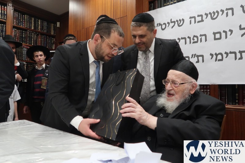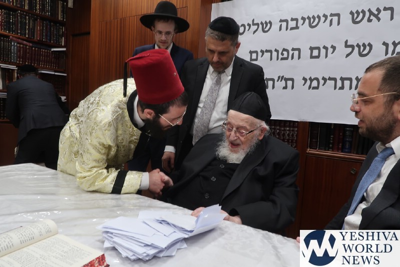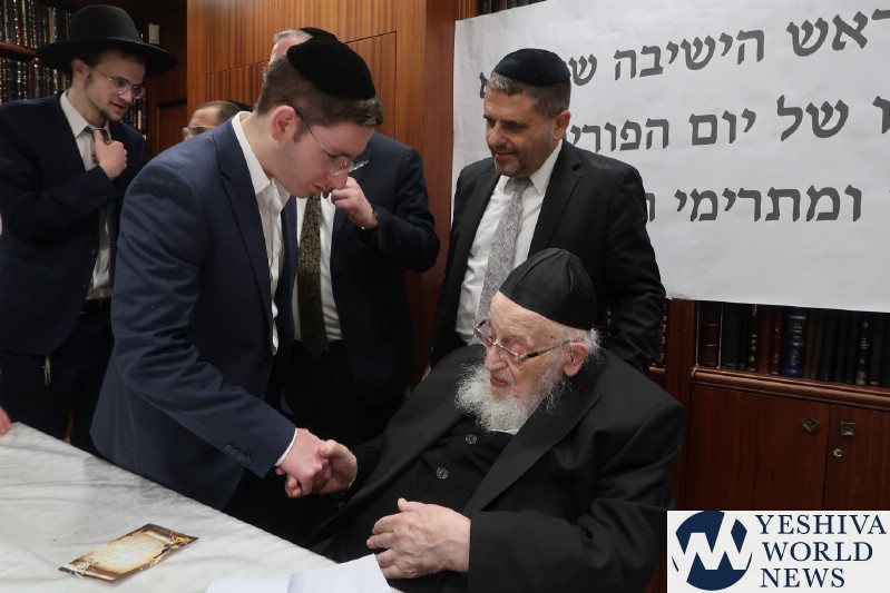 Following Shacharis on Purim morning, hundreds of people lined up for over an hour to receive a personal Bracha from Rav Bergman. With boundless warmth, the Rosh Yeshiva extended his brachos to every individual who approached him, ensuring that no one left empty-handed. Afterward, Rav Bergman meticulously fulfilled the mitzvos of matanos l’evyonim and mishloach manos. He also conducted a special Tefillah for those who support Torah, uplifting the spirits of his students and followers.