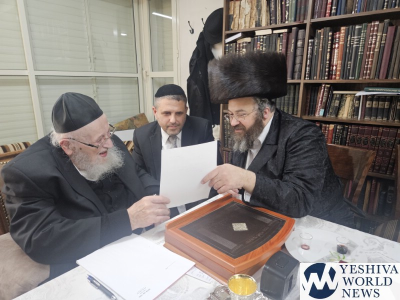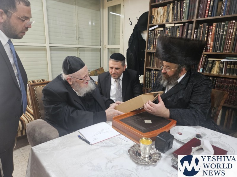 The day was further elevated by a meaningful exchange with the Belzer Rebbe. A Shliach arrived from the Belzer Rebbe with mishloach manos for Rav Bergman. In a reciprocal act of honor, Rav Bergman sent back mishloach manos, accompanied by a personal “kvittel” – a gesture of deep respect and spiritual connection between these towering Torah luminaries.