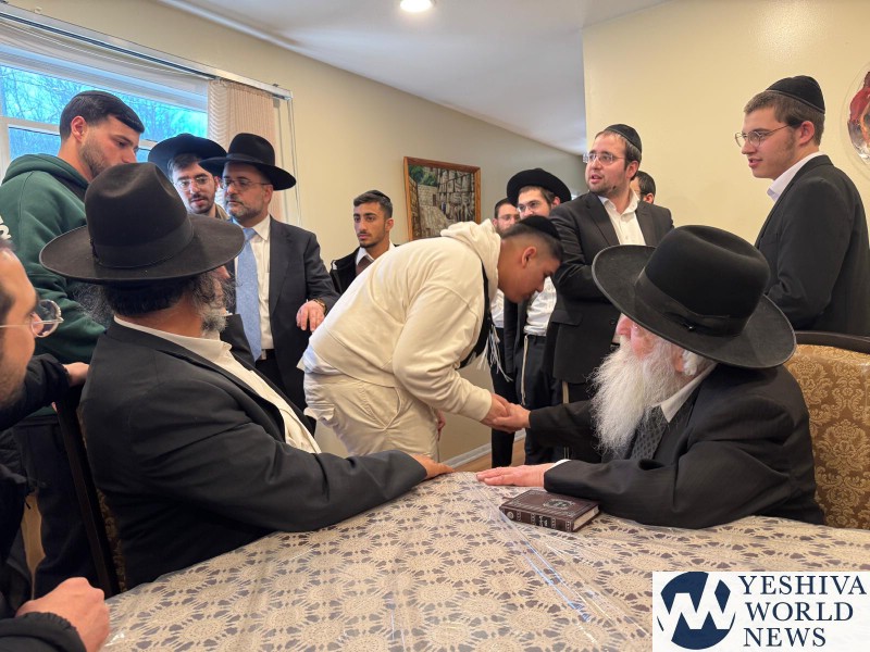 The attached video and photos were when the group of 38 boys visited Hagaon HaRav Elya Ber Wachtfogel, the Rosh Yeshiva of South Fallsburg.