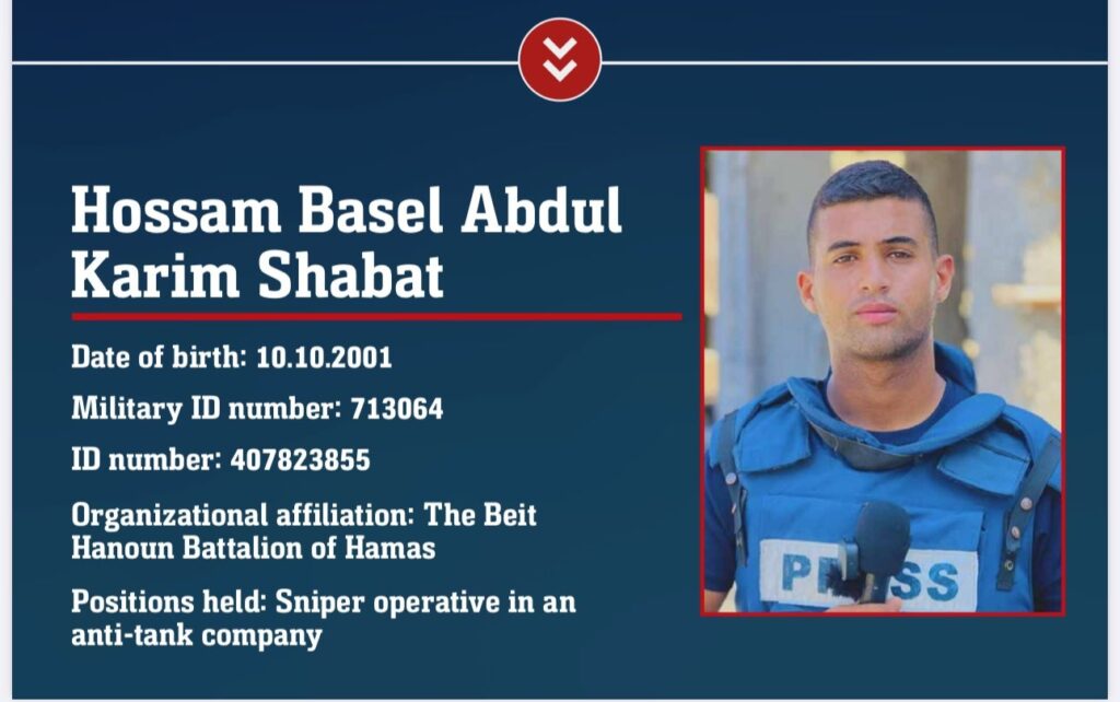 The IDF and Shin Bet on Monday eliminated Hossam Basel Abdul Karim Shabat, a terrorist from Hamas’s Beit Hanoun battalion who also worked as a journalist for the Al Jazeera media network.