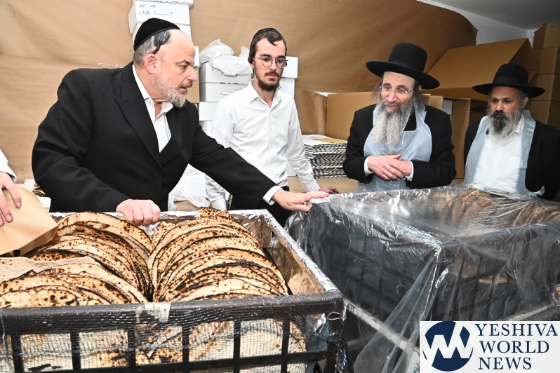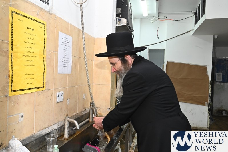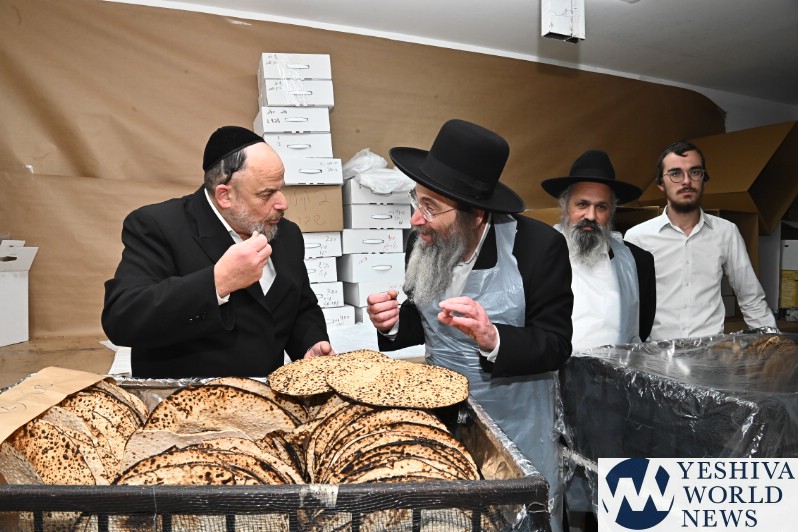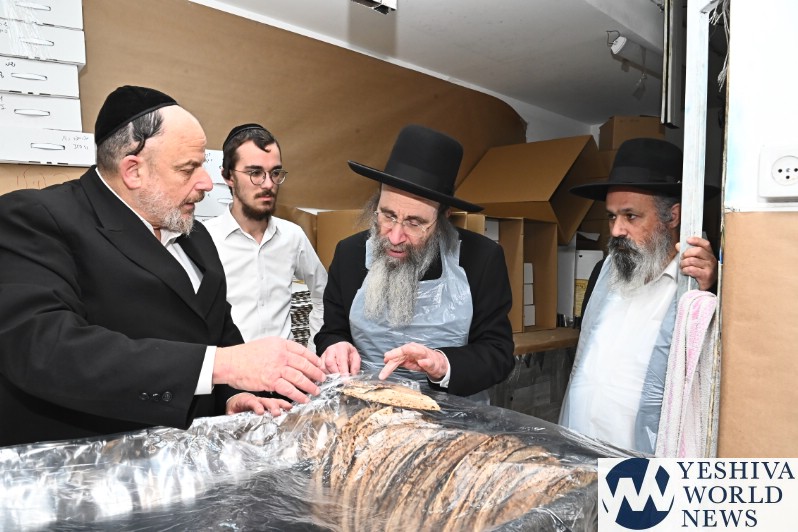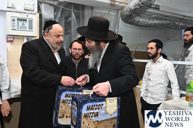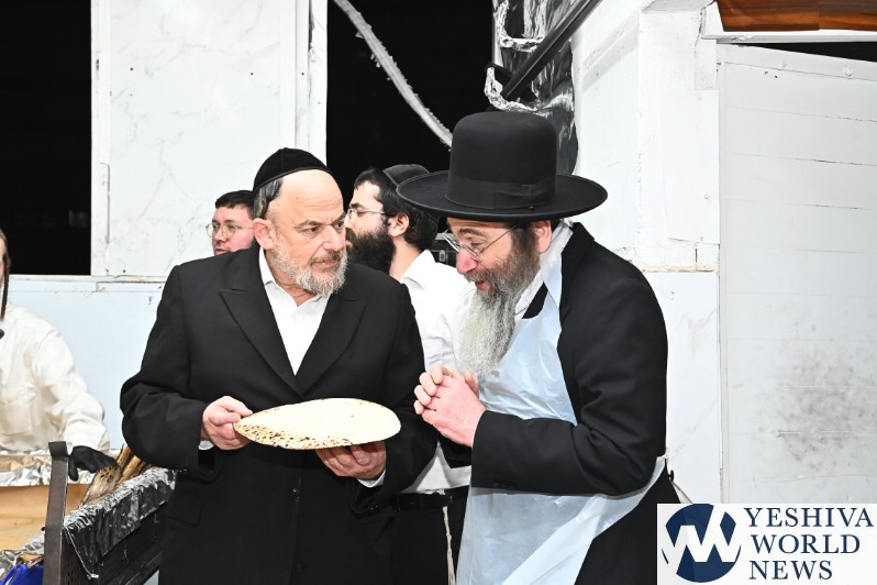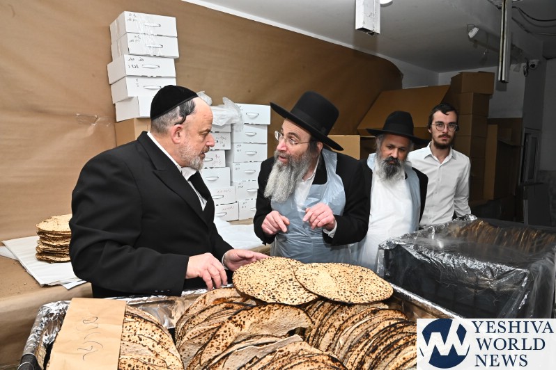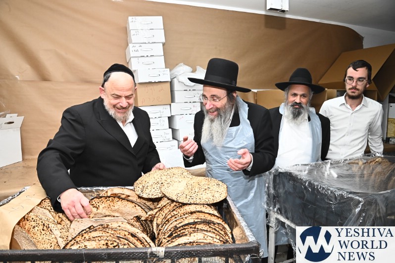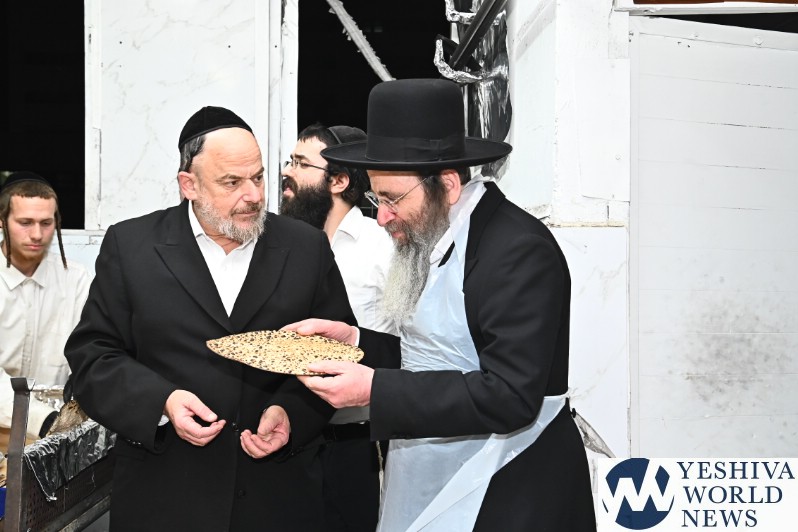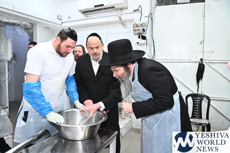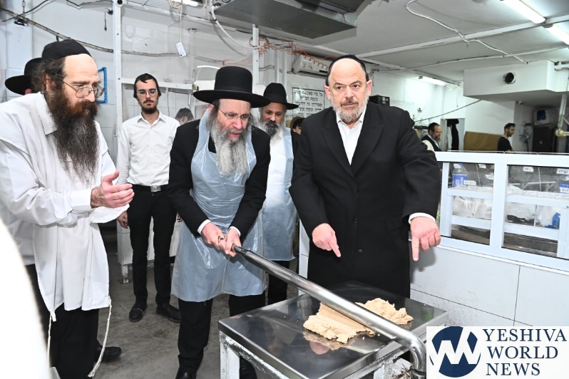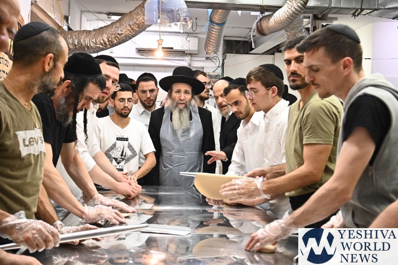 The famed Mirrer Mashgiach, HaRav Binyamin Hatzadik Finkel, seen baking Matzos this week.