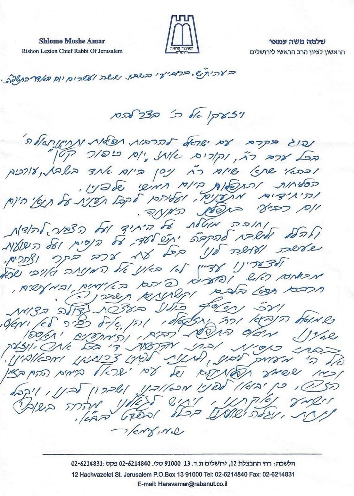 The atzeres, which will take place at 3 p.m. at the intersection of Rechov Yechezkel and Rechov Shmuel HaNavi in Jerusalem, will be headed by Zakein Roshei HaYeshivos HaGaon HaRav Moshe Tzadka, who will deliver the main address.