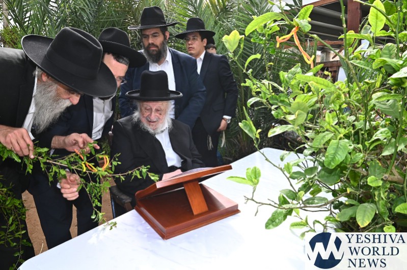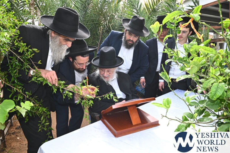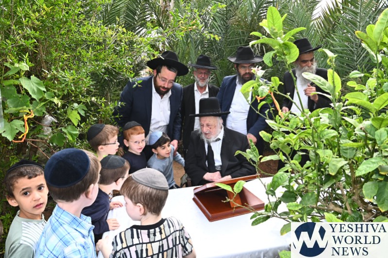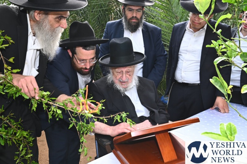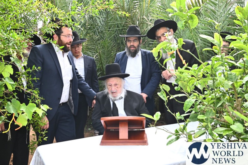 PHOTOS: Hagaon HaRav Berel Povasrsky, Rosh Yeshiva Ponavezh, Reciting Birchas Ilanos (Photos by Shuki Lerer for YWN)