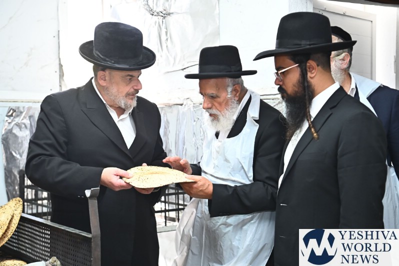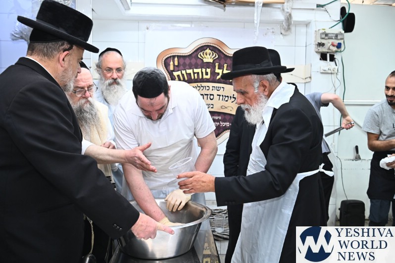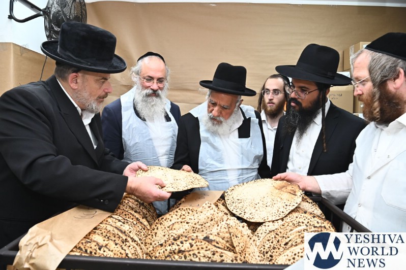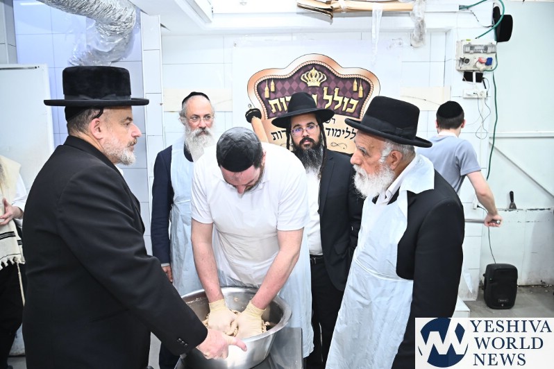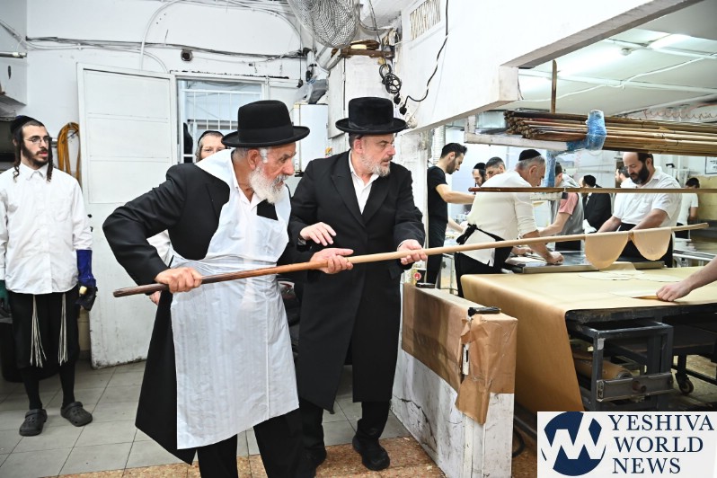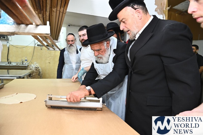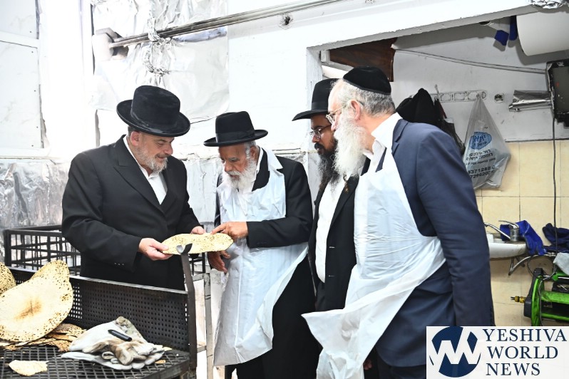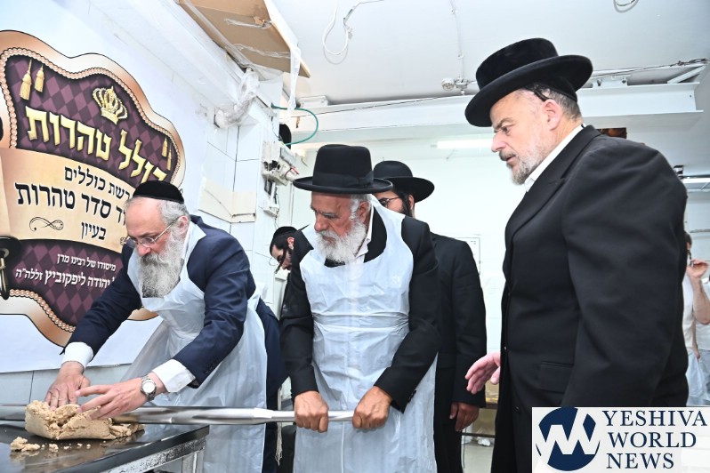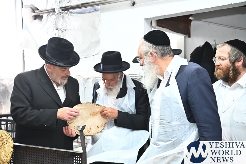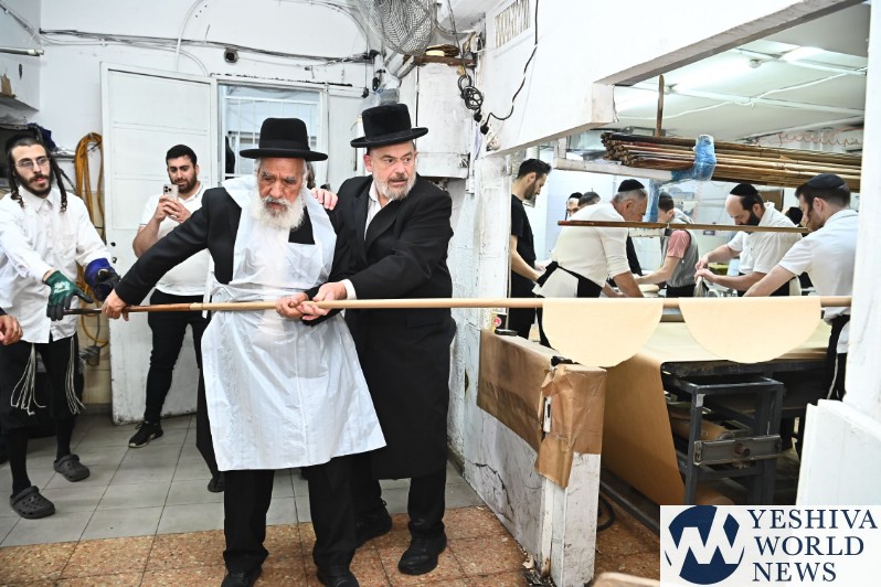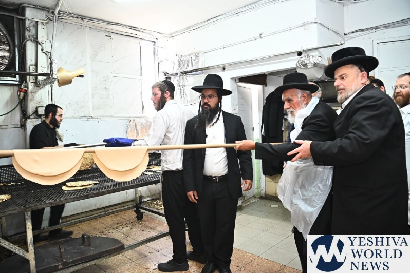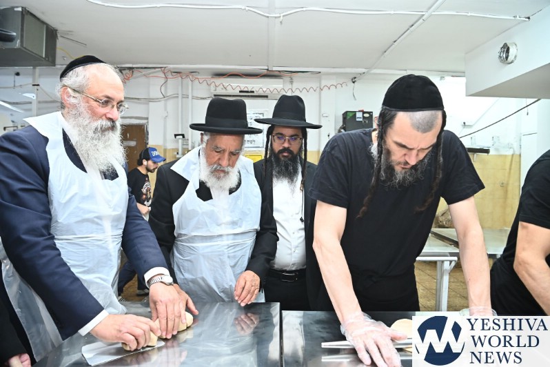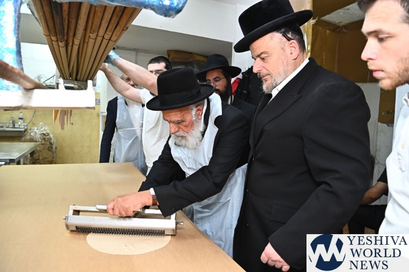 Hagaon HaRav Shlomo Machpud, a member of the Moetzes Chachmei Hatorah of Shas, baking Matzos. Photos for YWN by Shuki Lerer.