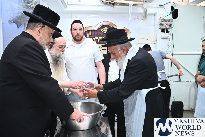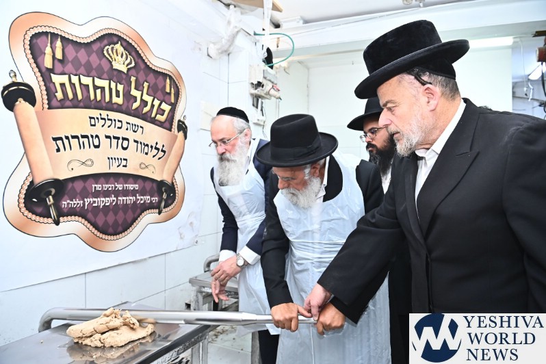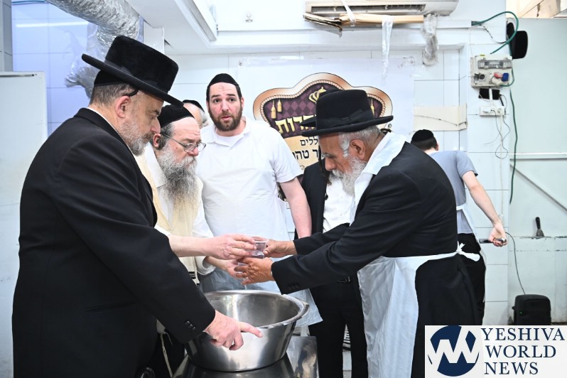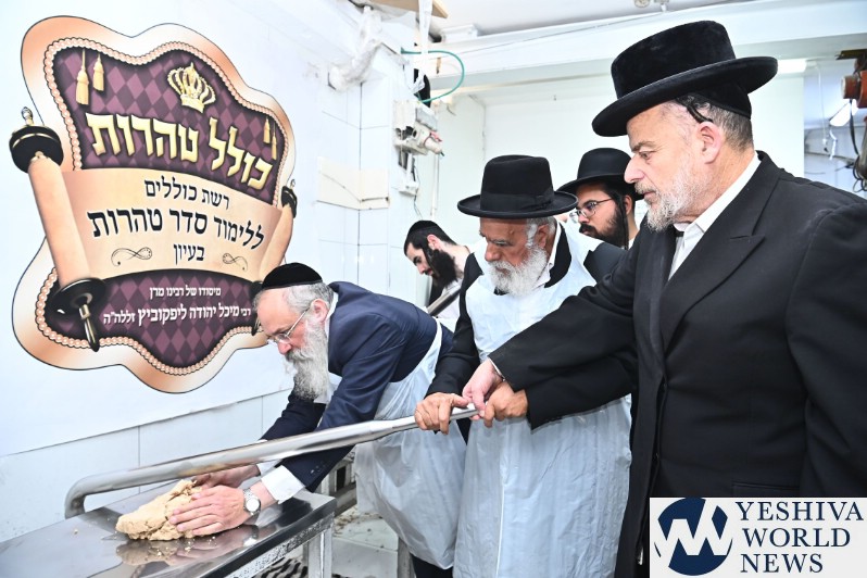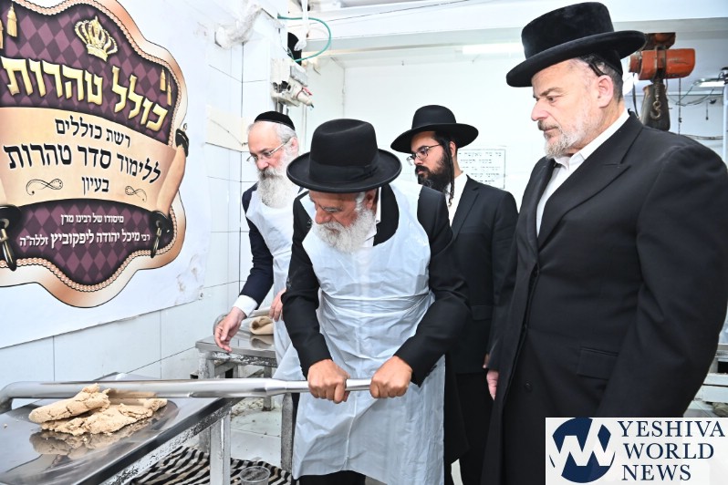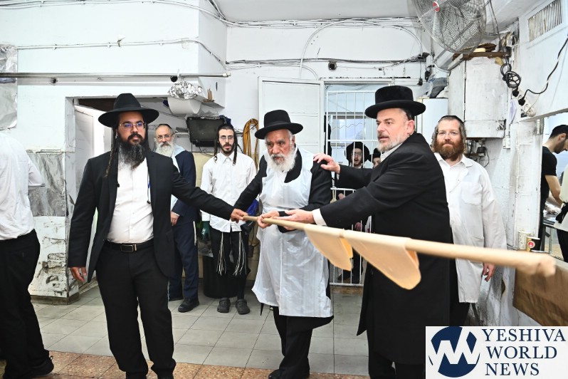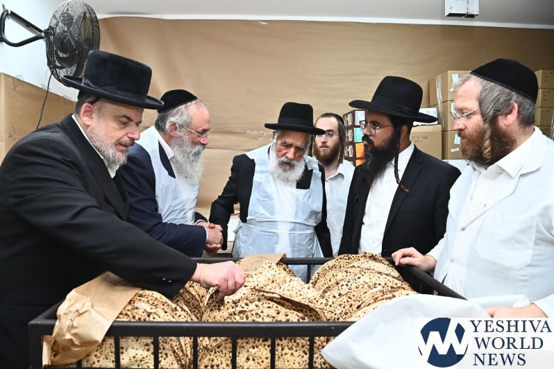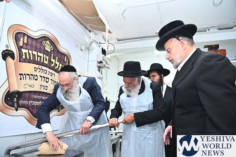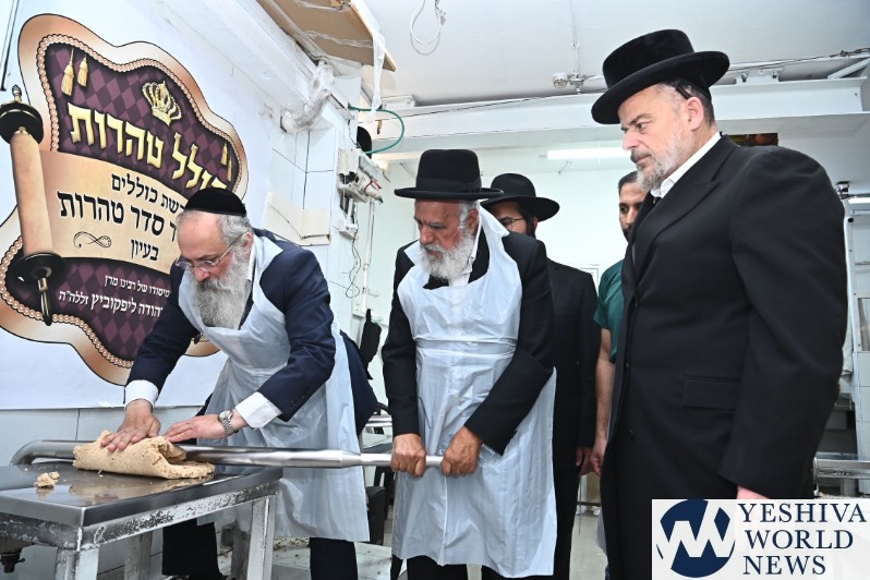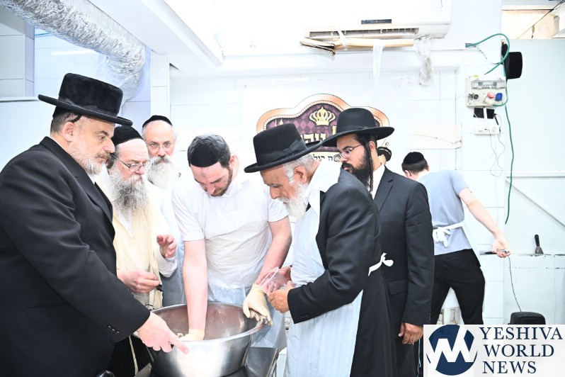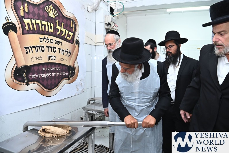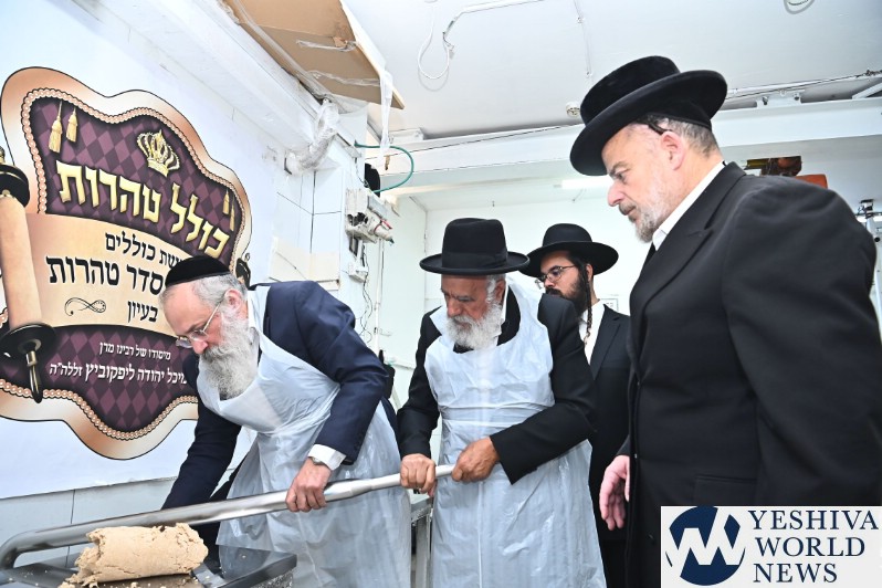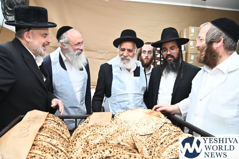 Hagaon HaRav Shlomo Machpud, a member of the Moetzes Chachmei Hatorah of Shas, baking Matzos. Photos for YWN by Shuki Lerer.