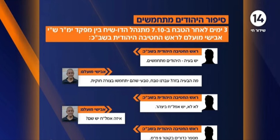 Channel 14 revealed a conversation between the two that took place three days after the Hamas massacre on October 7. What was A. concerned about after Hamas’s grisly murder of 1,200 people, abduction of 251 people, and other atrocities?