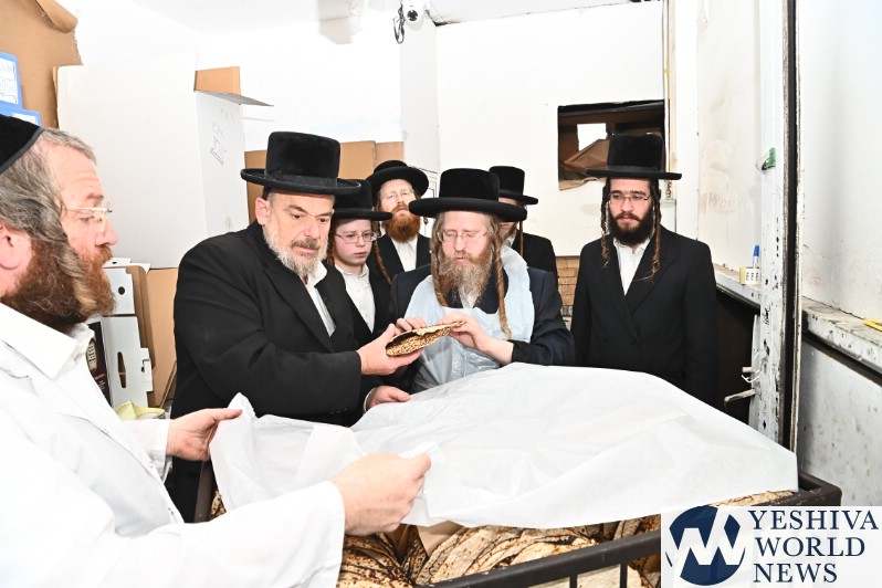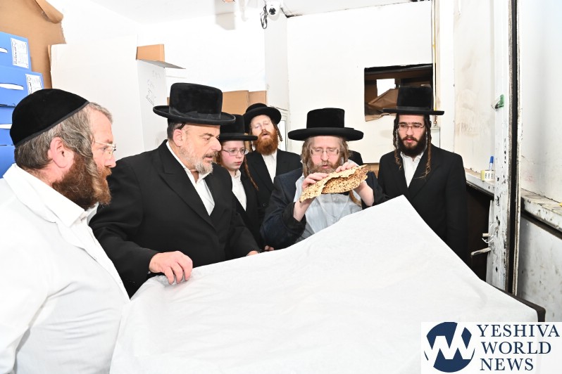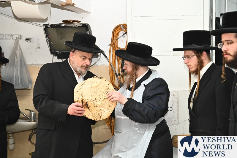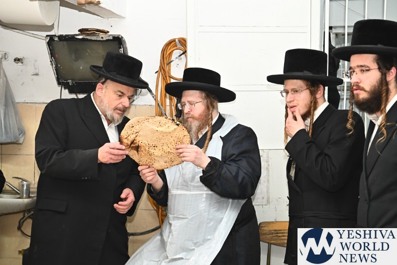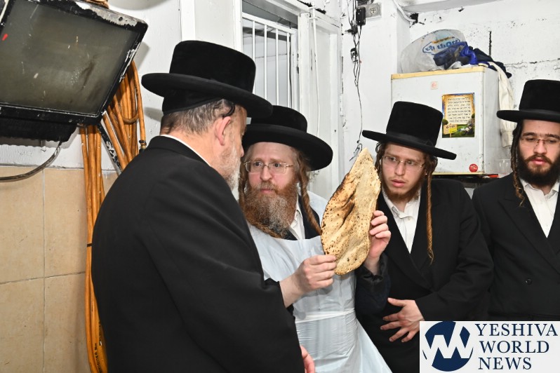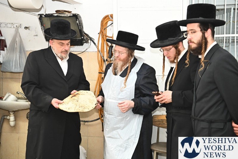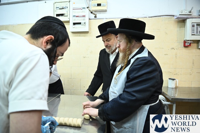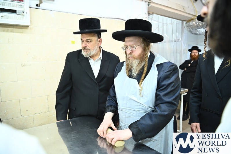 PHOTOS: The Shomrei Emunim Rebbe Baking Matzos (Photos By Shuki Lerer For YWN)