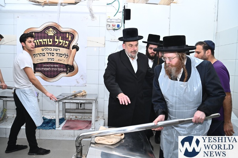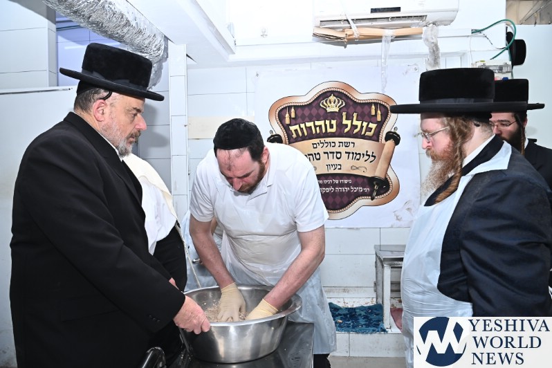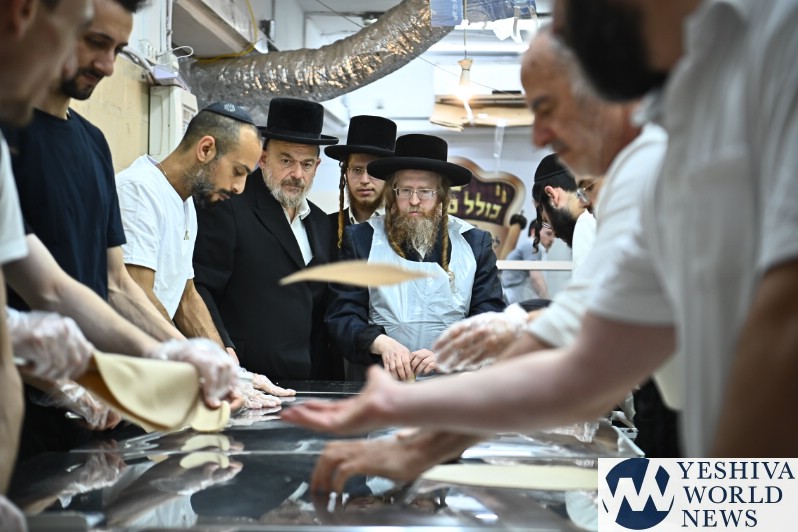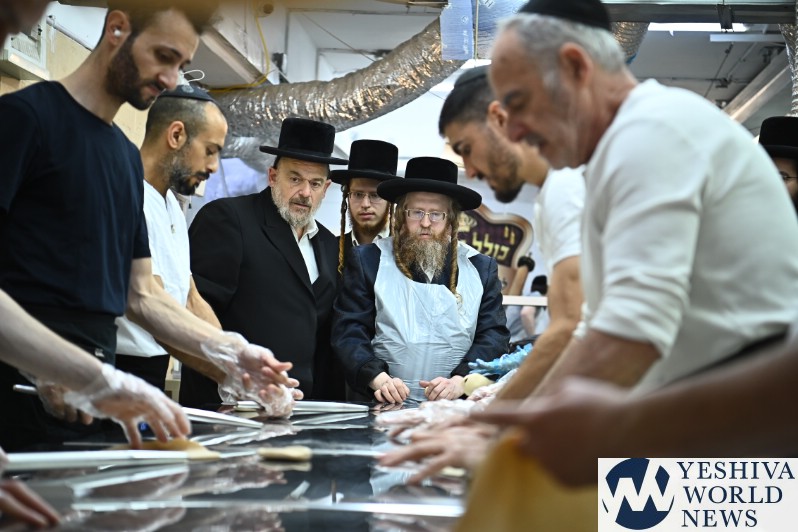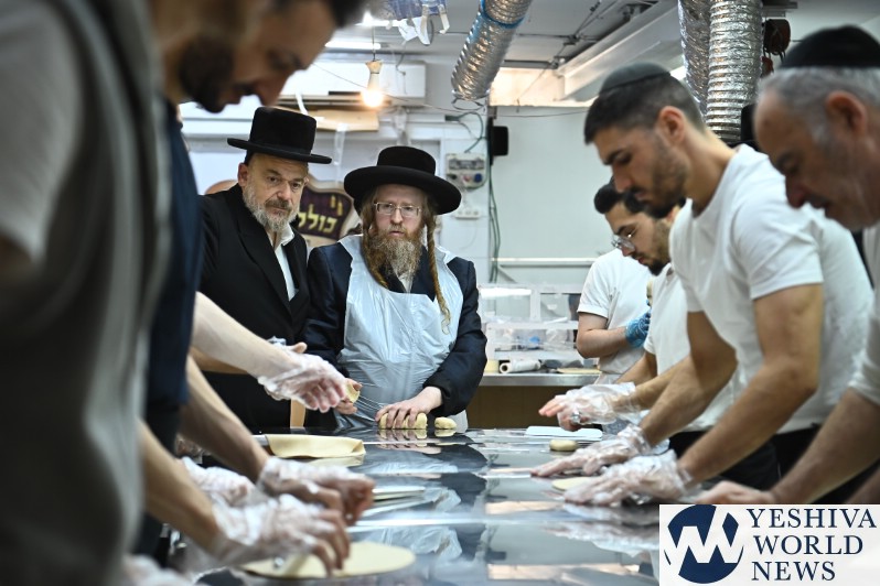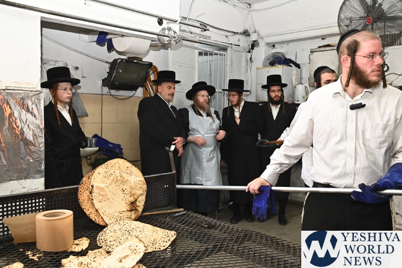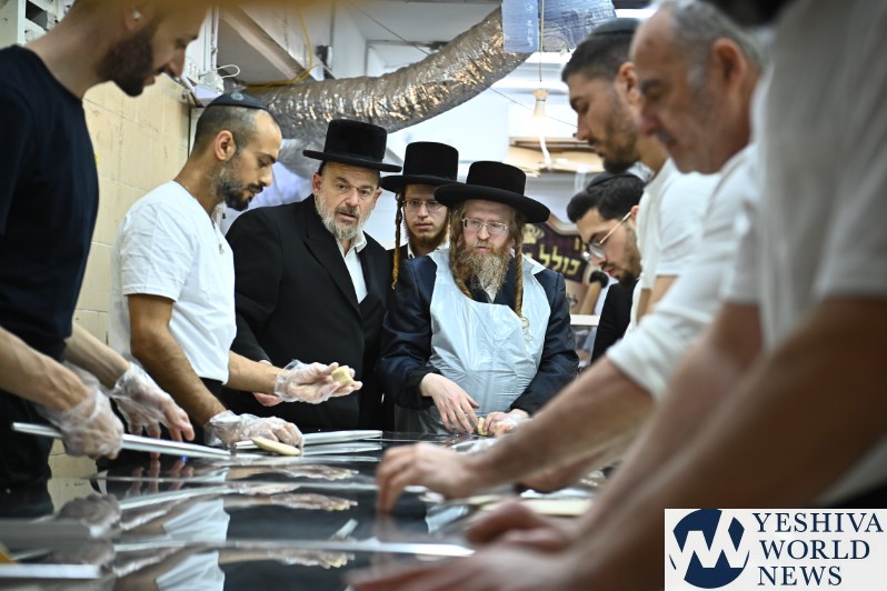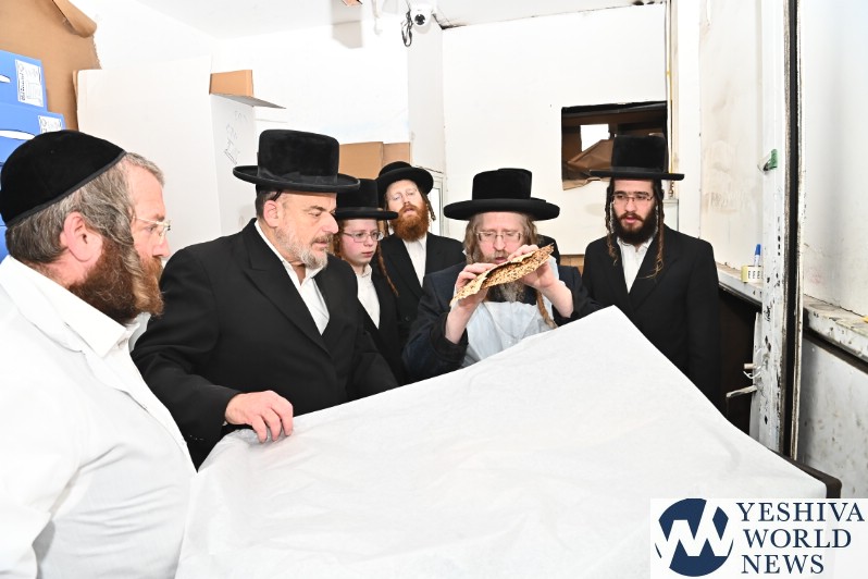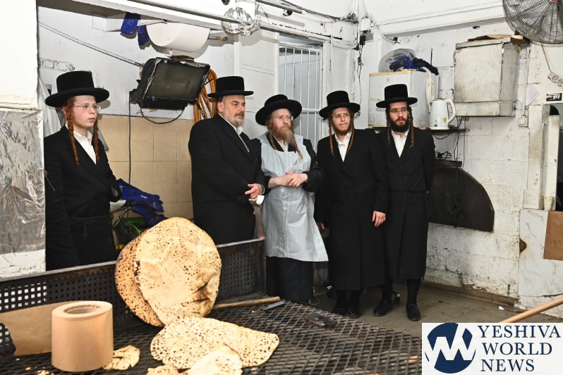 PHOTOS: The Shomrei Emunim Rebbe Baking Matzos (Photos By Shuki Lerer For YWN)