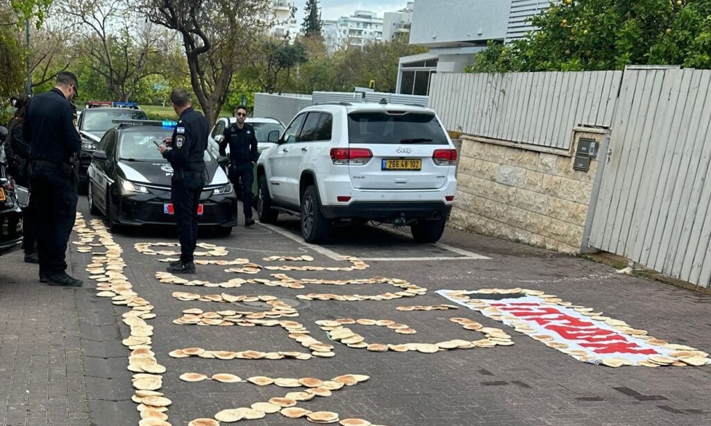 Leftist protesters held a “chometz protest” outside the home of Environmental Protection Minister Idit Silman (Likud) on Monday morning, the first day of Chol HaMoed in Israel, spreading dozens of pitas outside her home.