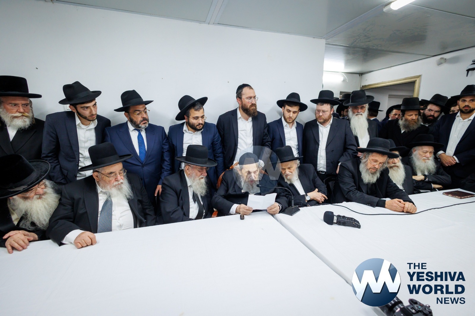 Several dozen roshei yeshiva representing the Litvish, Chassidish, and Sefardic Torah worlds in Eretz Yisroel gathered on Monday at the home of the venerable sar haTorah, Maran Rav Dov Landau shlit”a, to confront the escalating gezeiros against yeshivos.