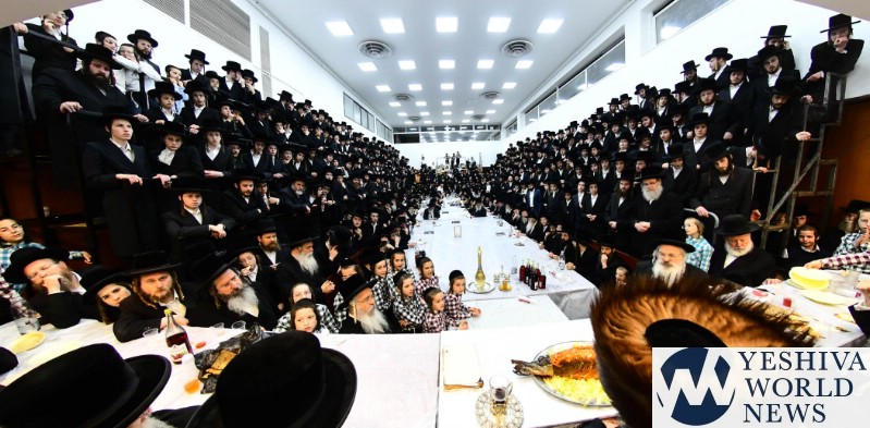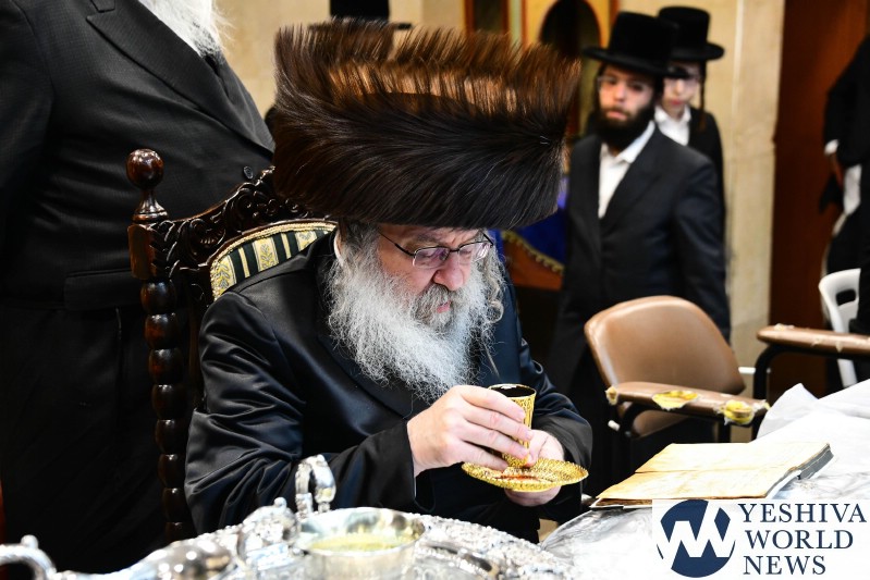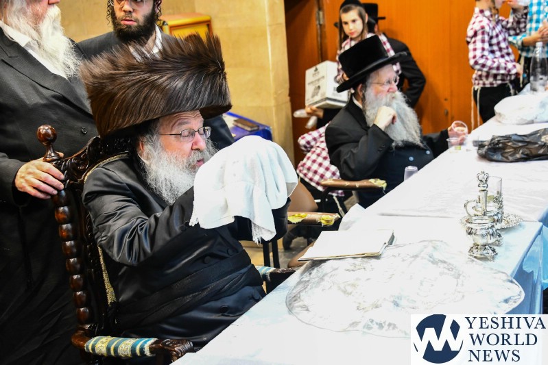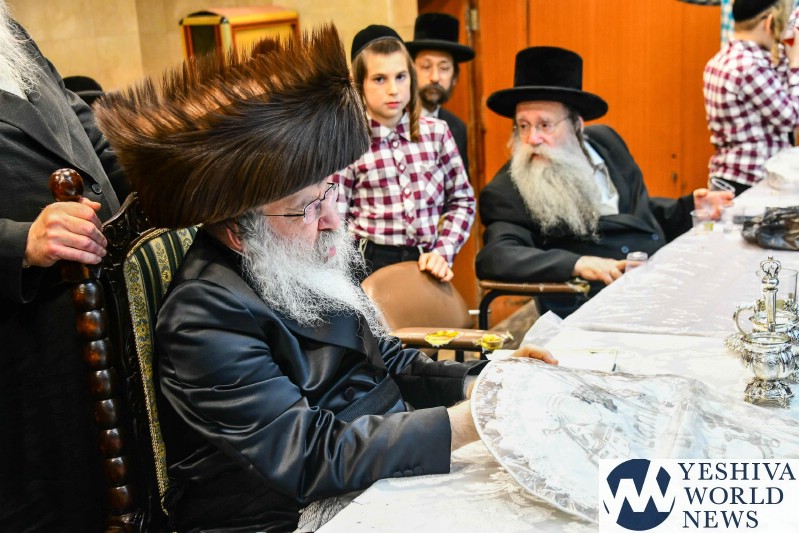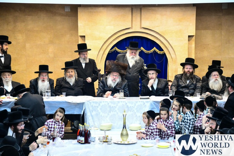 PHOTOS: The Nadvorna Rebbe By His Pesach Sheni Tish (Via Shuki Lerer For YWN)