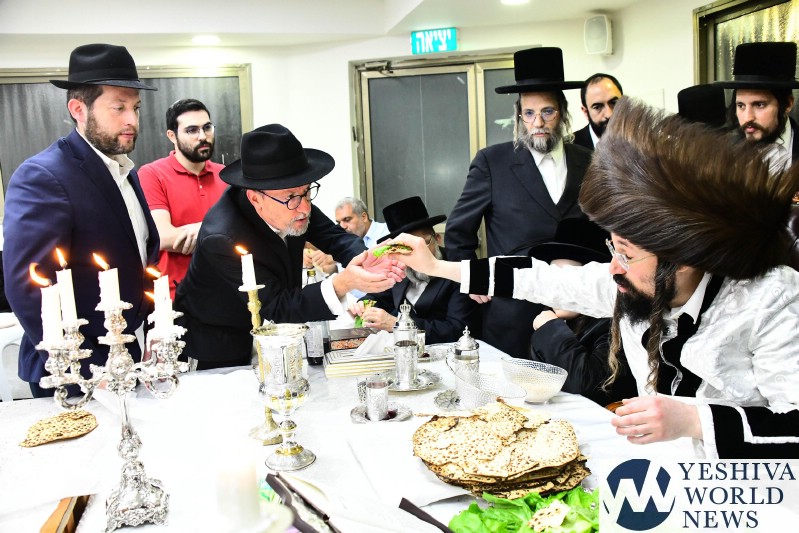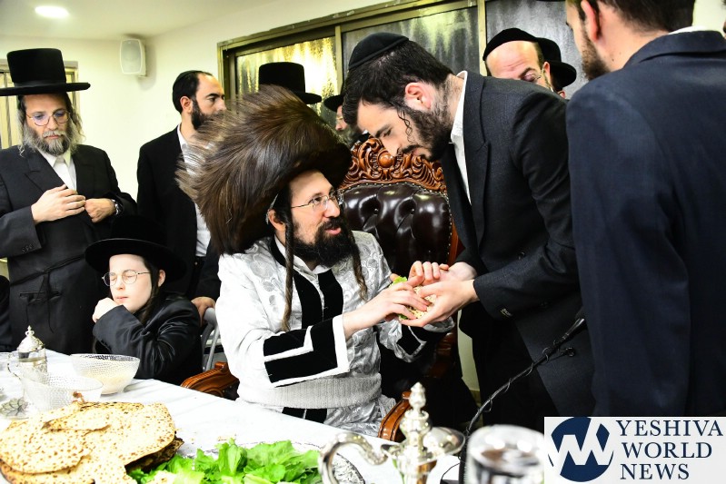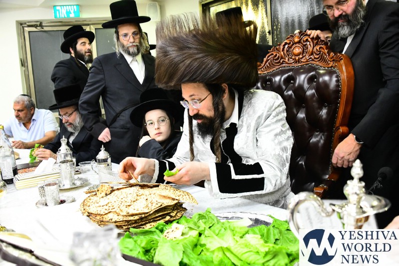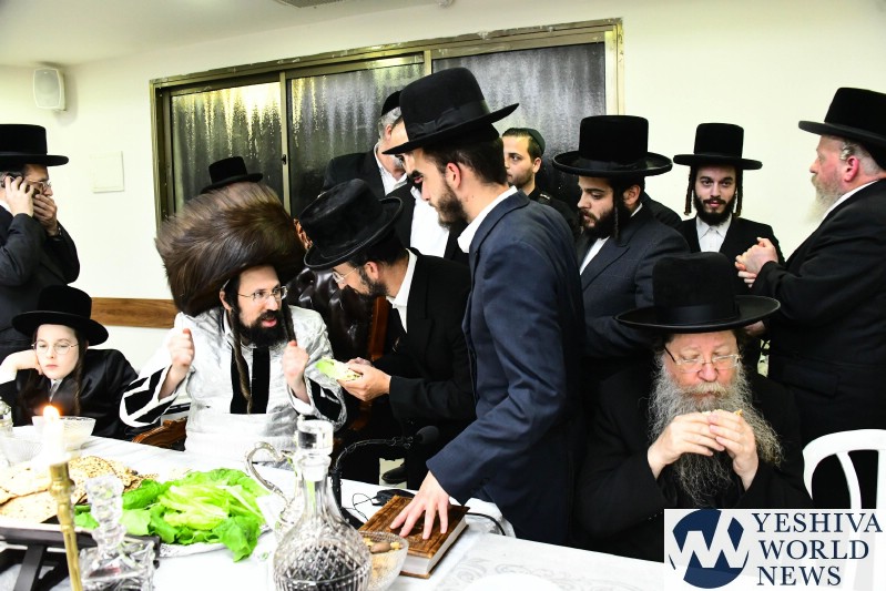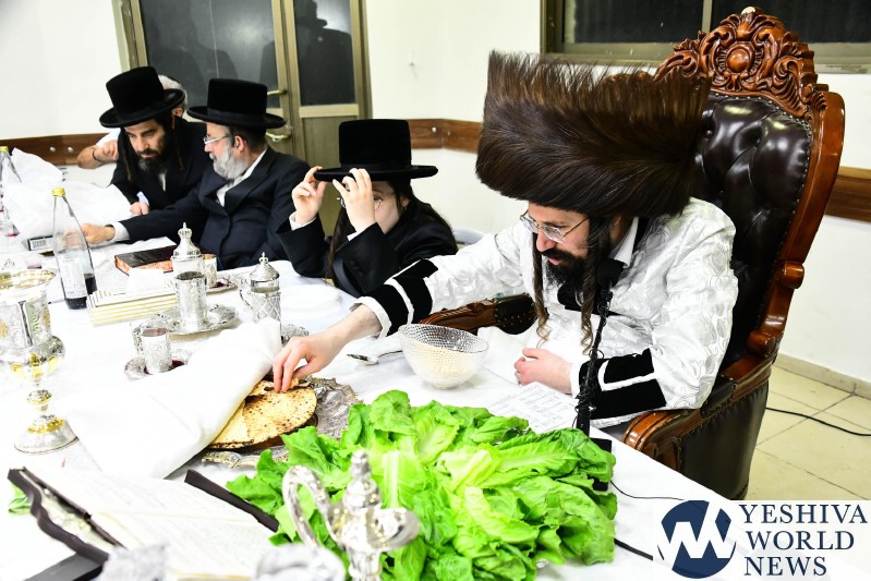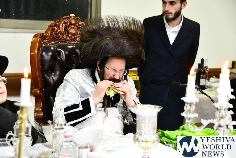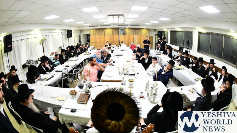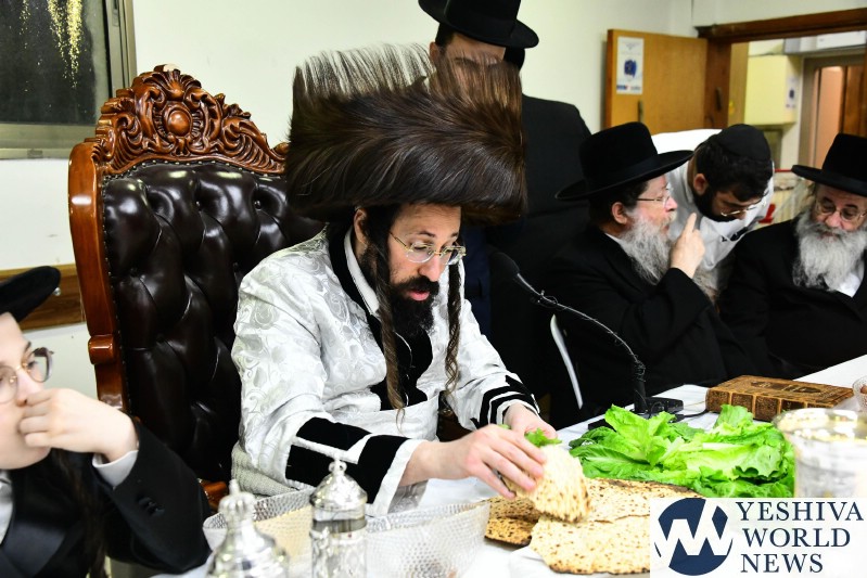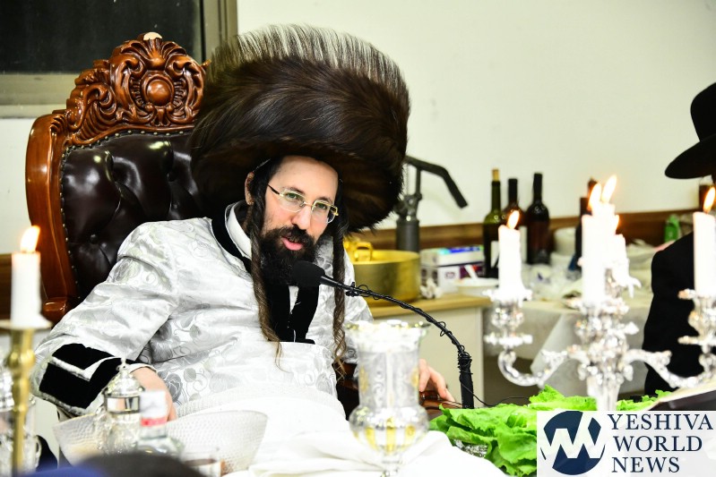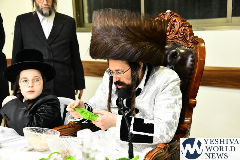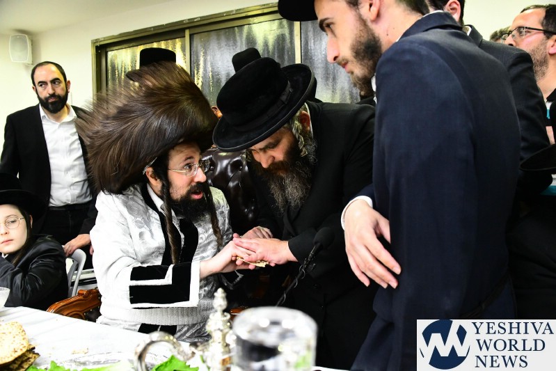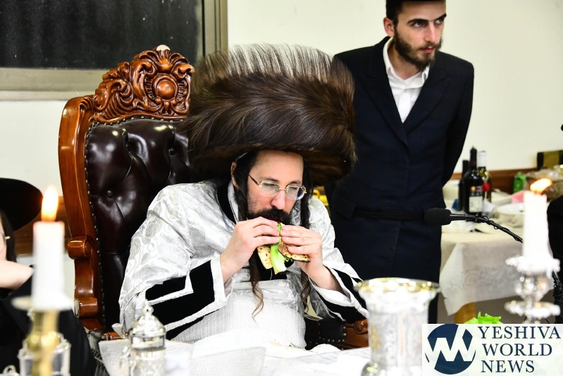 PHOTOS: The Mezibuz Rebbe By His Pesach Sheni Tish (Via Shuki Lerer For YWN)