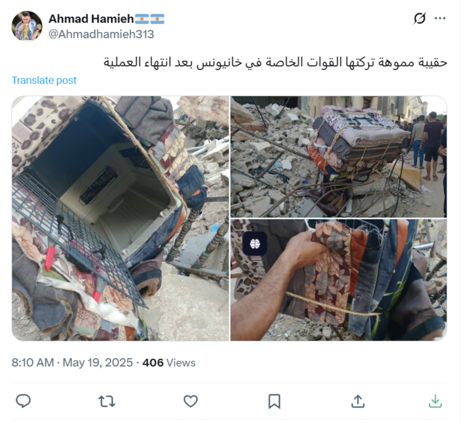 Early Monday morning, as the IDF bombarded Khan Younis with air strikes, machine gun fire from helicopter gunships, and artillery fire, special forces entered the area disguised as displaced Gazan women with a “wagon” loaded with mattresses [and some operatives hiding inside a special compartment in the wagon]. Gazan sources reported that internet and communication networks were cut off in most of the city during the operation.
