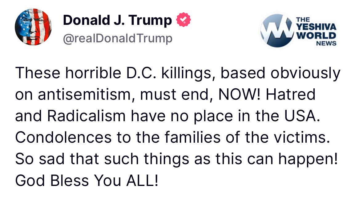 We have full faith in law enforcement authorities on both the local and federal levels to apprehend the shooter and protect Israel’s representatives and Jewish communities throughout the United States.”