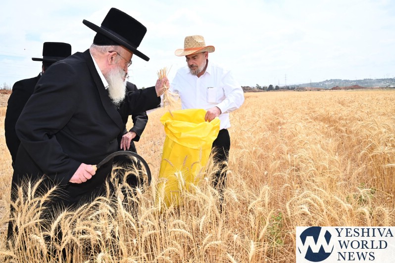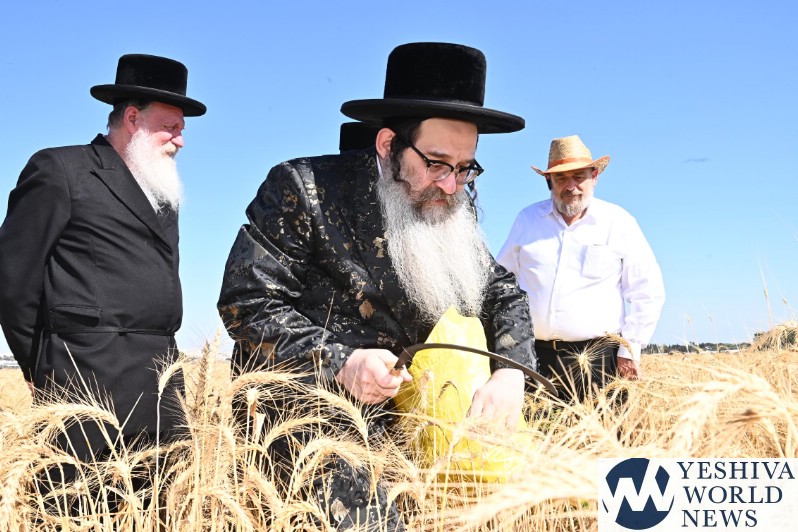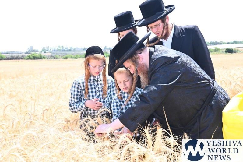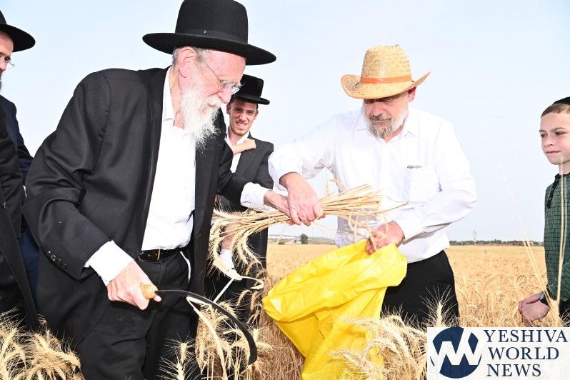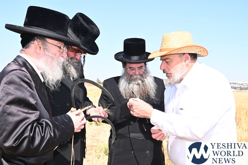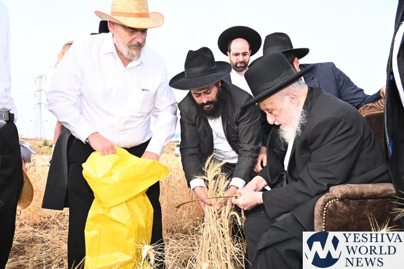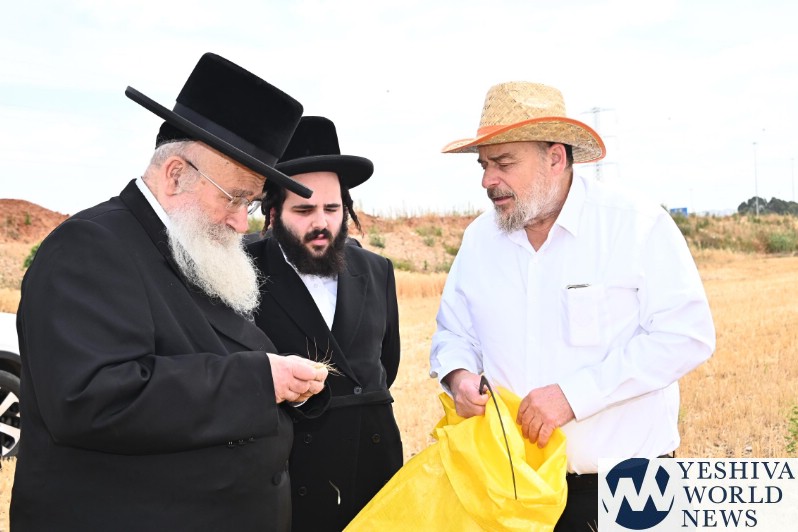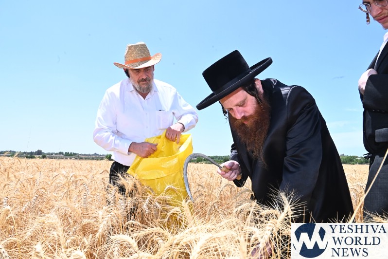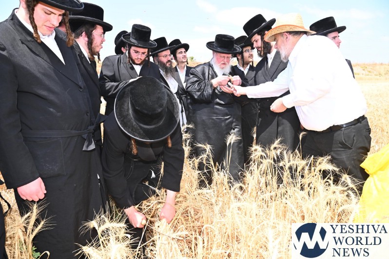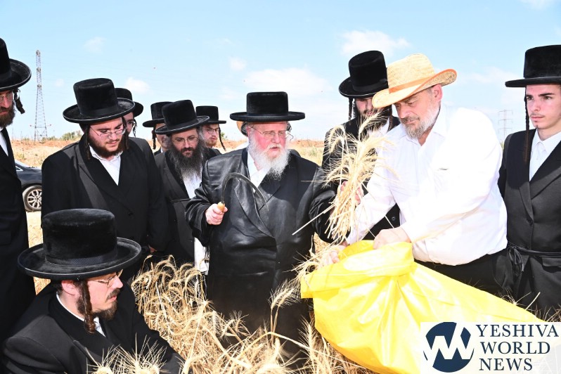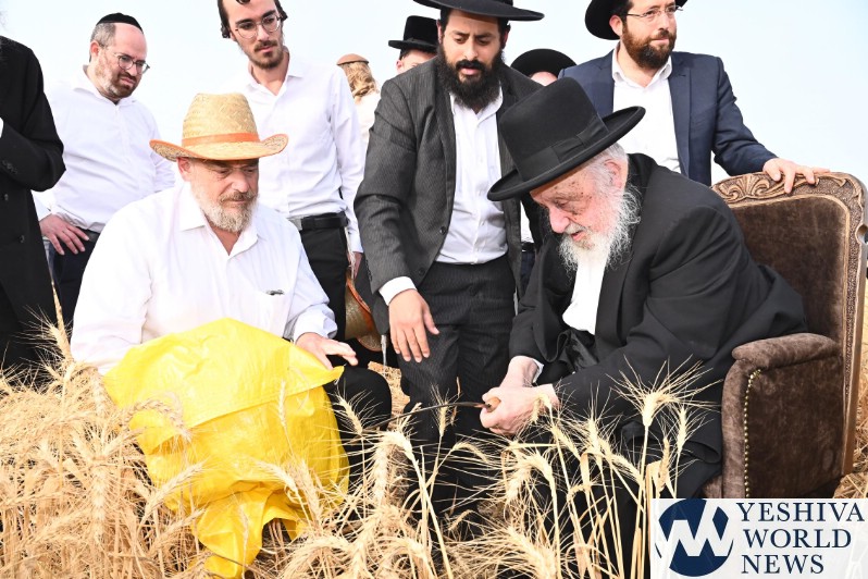 Prominent Gedolei Yisrael, led by Rosh Yeshiva HaGaon HaRav Berel Povarsky, HaGaon HaRav Shimon Galai, HaGaon HaRav Shmuel Eliezer Stern, and the Admorim from Shevet HaLevi, Sasov, Shomrei Emunim, Bitchkov, Nadvorna Elad, Meilin, and others, went to the fields to harvest wheat for the renowned Tiferes Matzos Bakery, owned by the esteemed askan Reb Aharon Yosef Kornitzer.