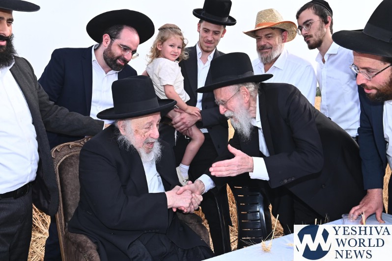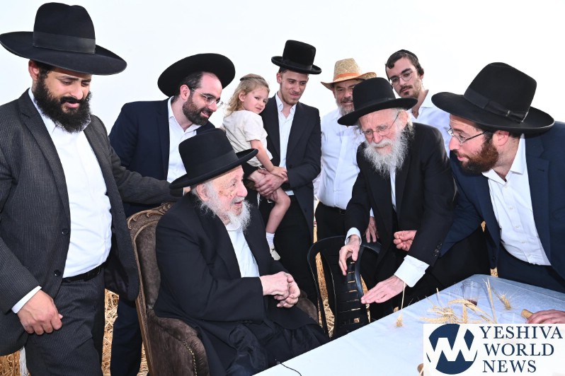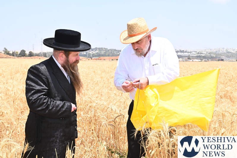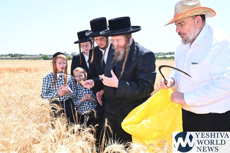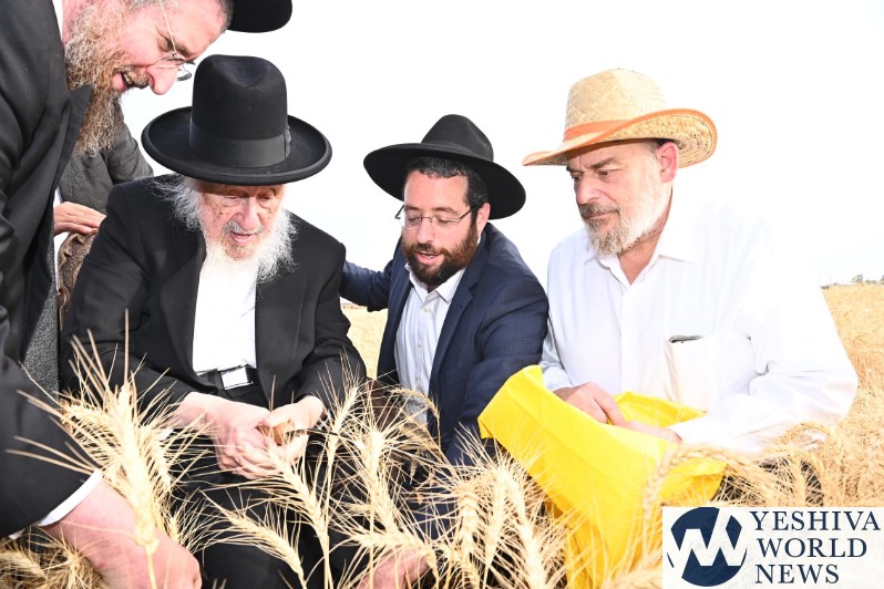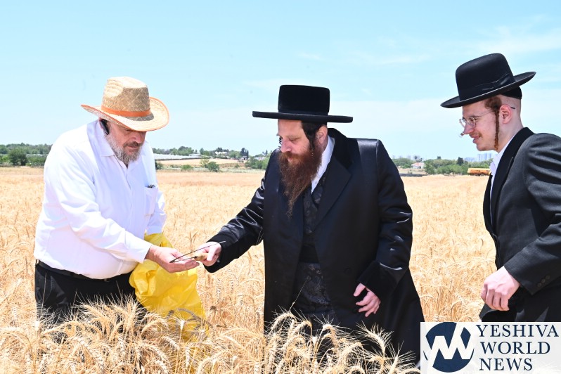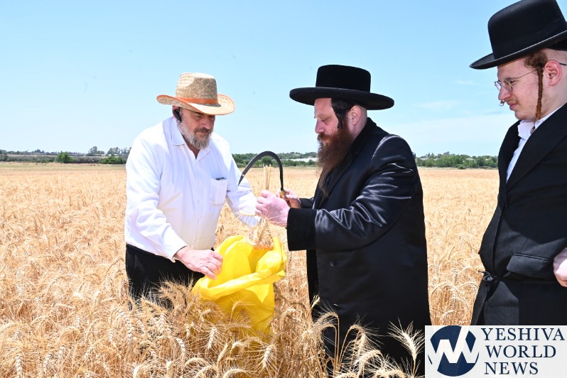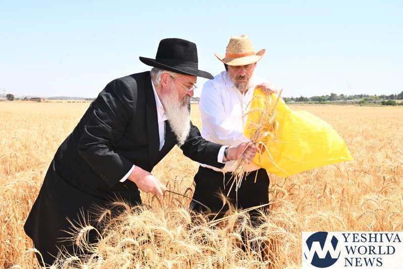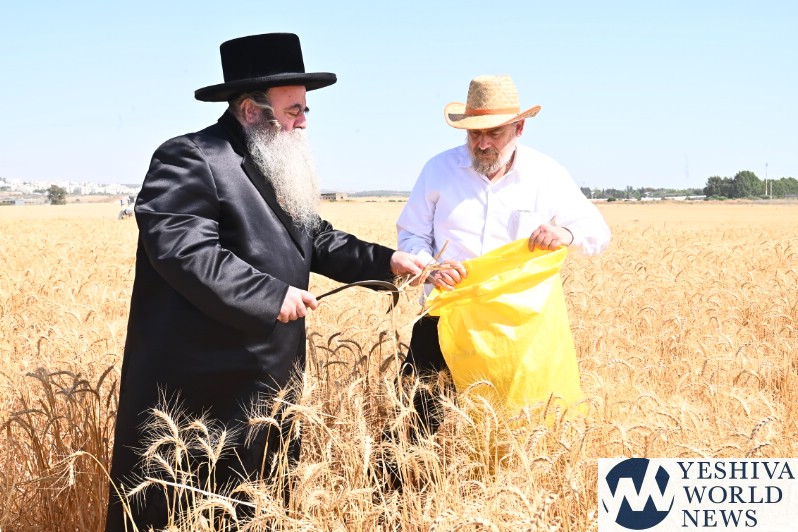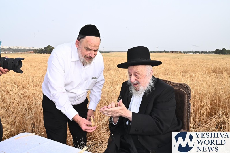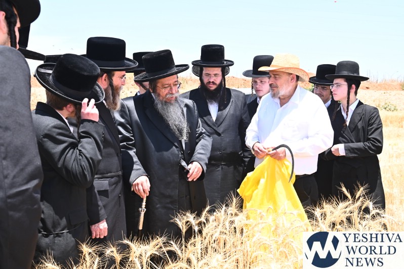 Prominent Gedolei Yisrael, led by Rosh Yeshiva HaGaon HaRav Berel Povarsky, HaGaon HaRav Shimon Galai, HaGaon HaRav Shmuel Eliezer Stern, and the Admorim from Shevet HaLevi, Sasov, Shomrei Emunim, Bitchkov, Nadvorna Elad, Meilin, and others, went to the fields to harvest wheat for the renowned Tiferes Matzos Bakery, owned by the esteemed askan Reb Aharon Yosef Kornitzer.