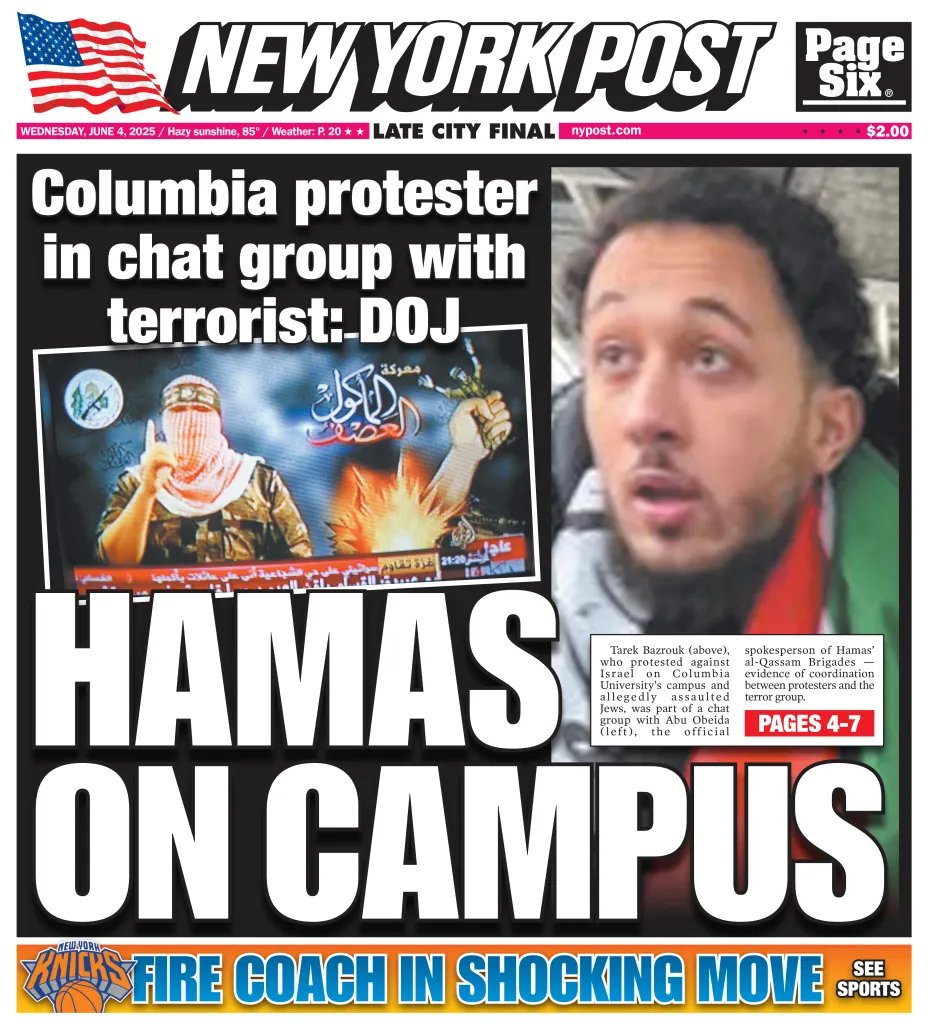 Columbia University has sought to distance itself from Bazrouk, stating he “is not affiliated with our university in any way” and reaffirming its condemnation of antisemitism. But critics say the campus environment — where masked agitators and antisemitic slogans were allowed to fester for months — became fertile ground for hate.