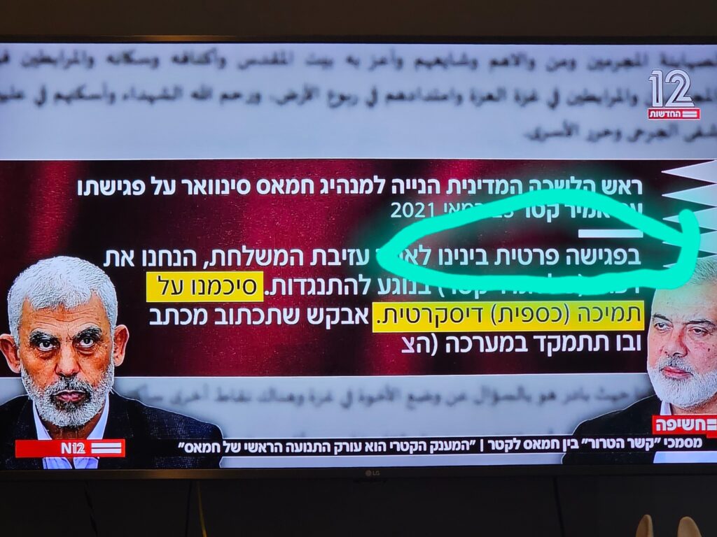 In a 2019 meeting between senior Hamas and Qatari officials, then-Hamas political leader Ismail Haniyeh said that the “Qatari grants are Hamas’s main artery.”