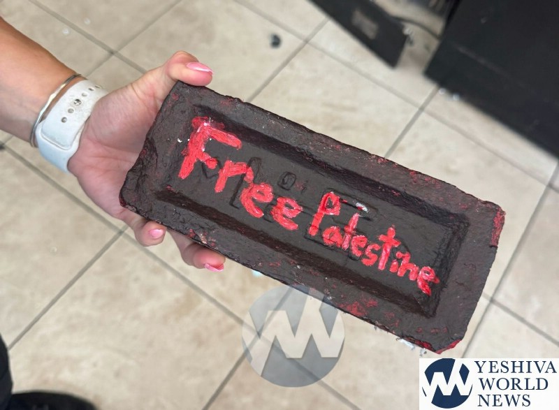 A kosher grocery store in Brookline, Massachusetts, was the target of an antisemitic attack early Sunday morning, after a brick scrawled with the words “Free Palestine” was thrown through its front window.