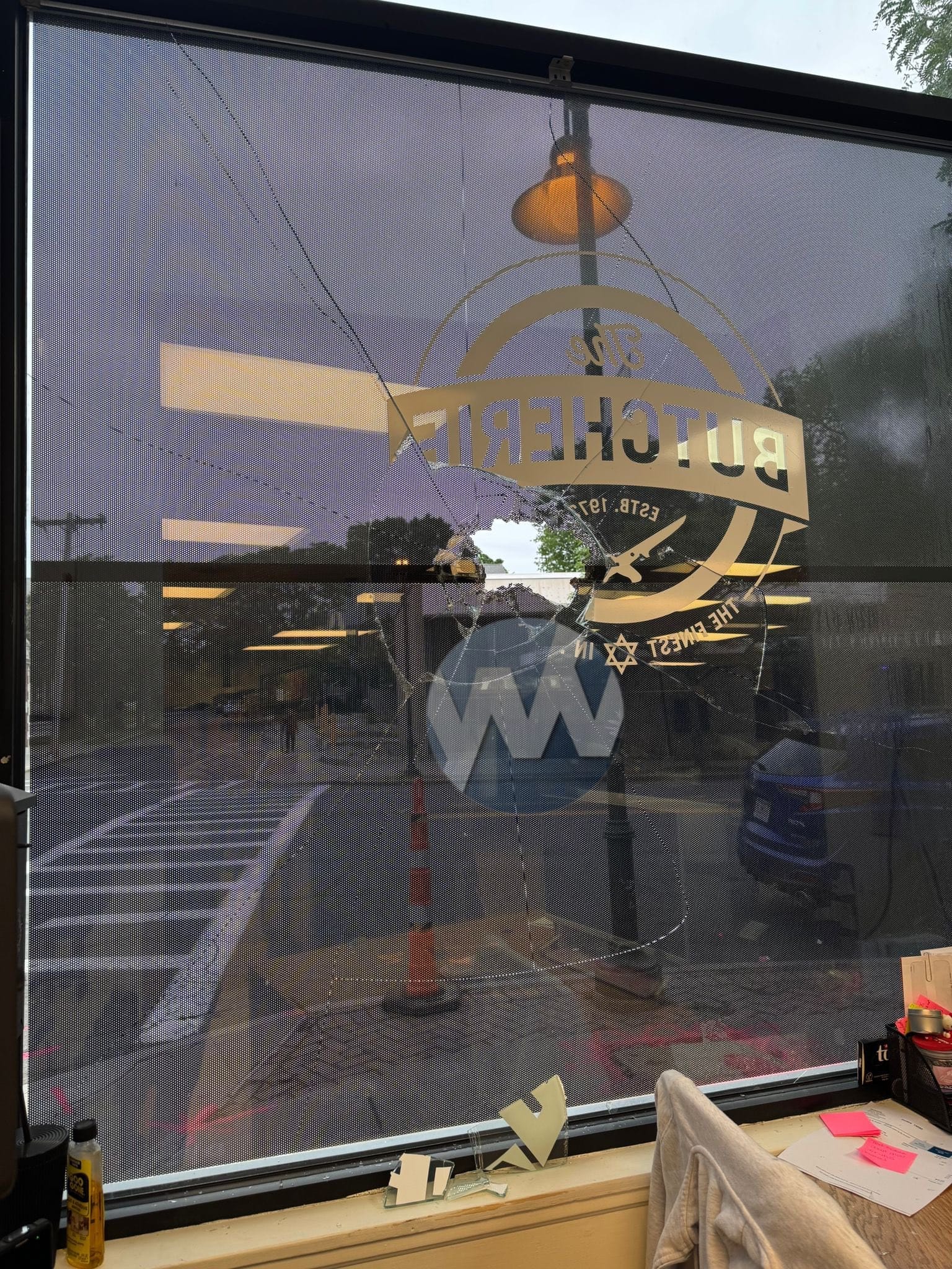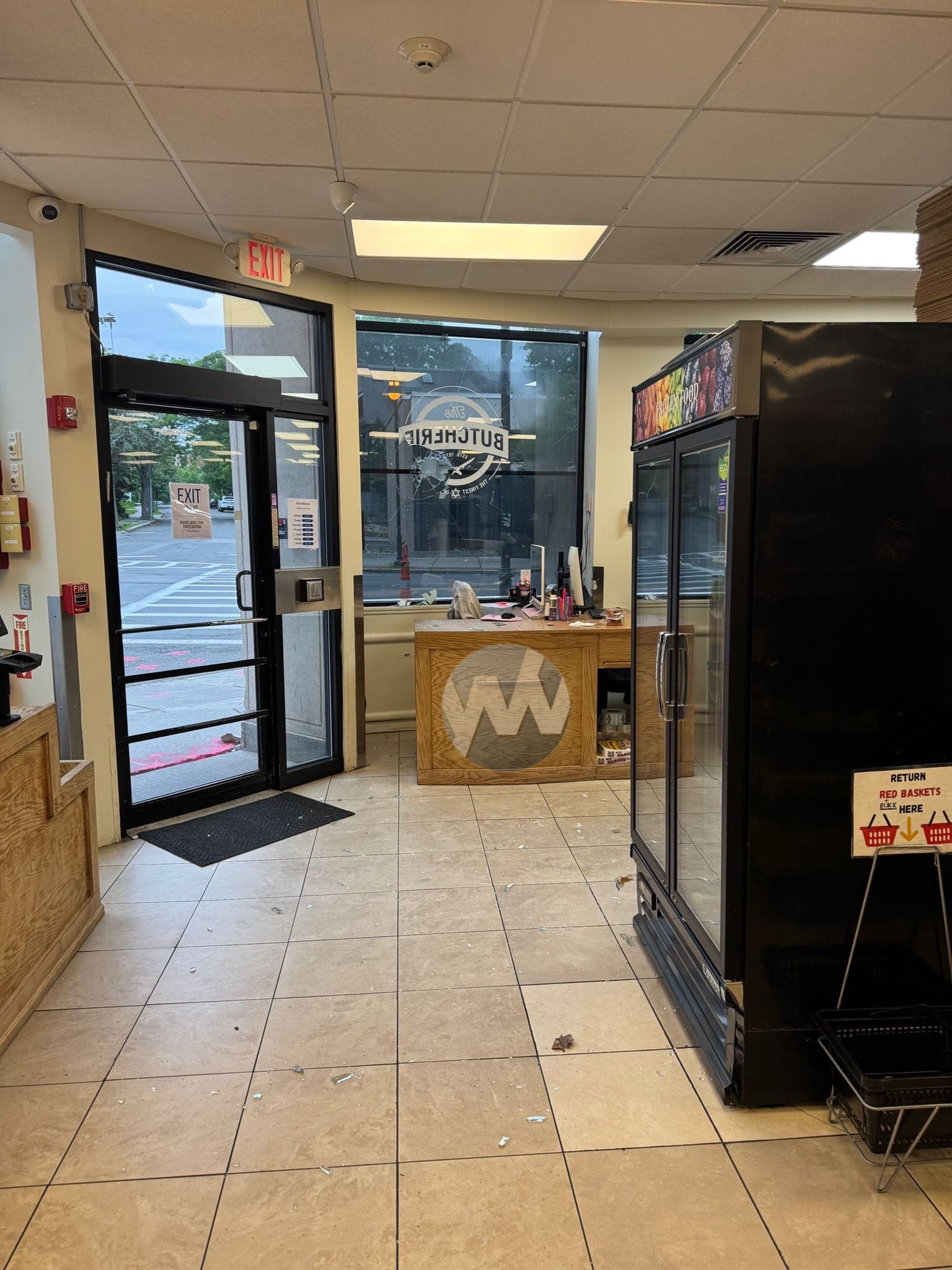 The incident occurred shortly after midnight at The Butcherie, a long-established Jewish-owned business located at 428 Harvard Street. According to Brookline police, at least two masked individuals approached the store from nearby Coolidge Street before launching the brick into the storefront and fleeing the scene.