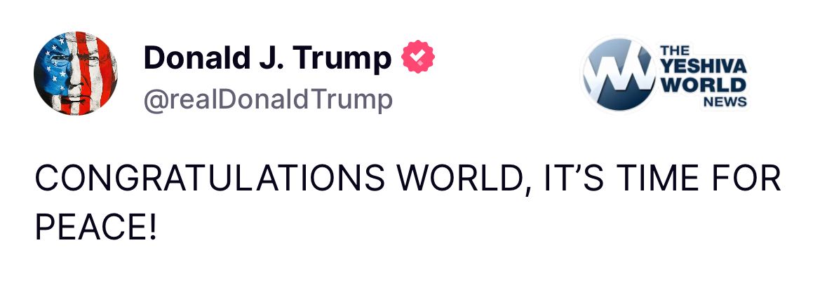 He also posted “CONGRATULATIONS WORLD, IT’S TIME FOR PEACE!