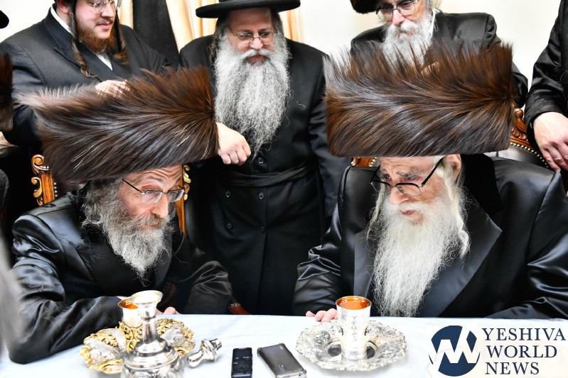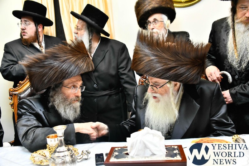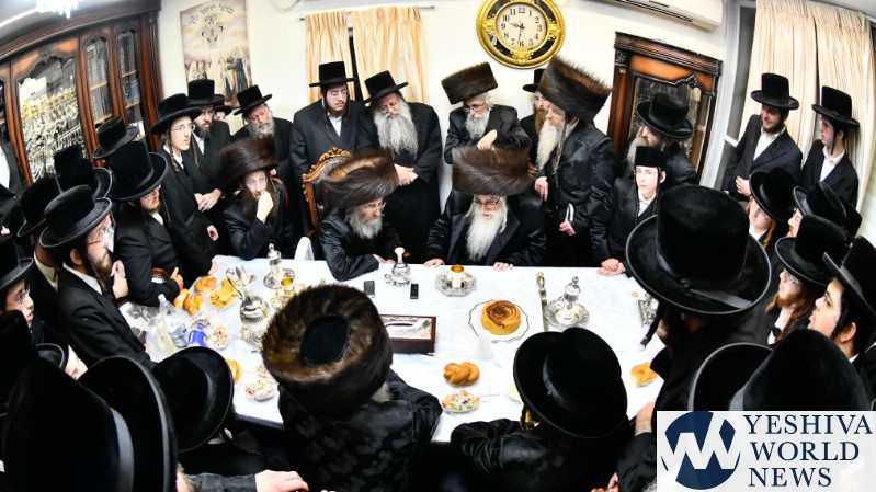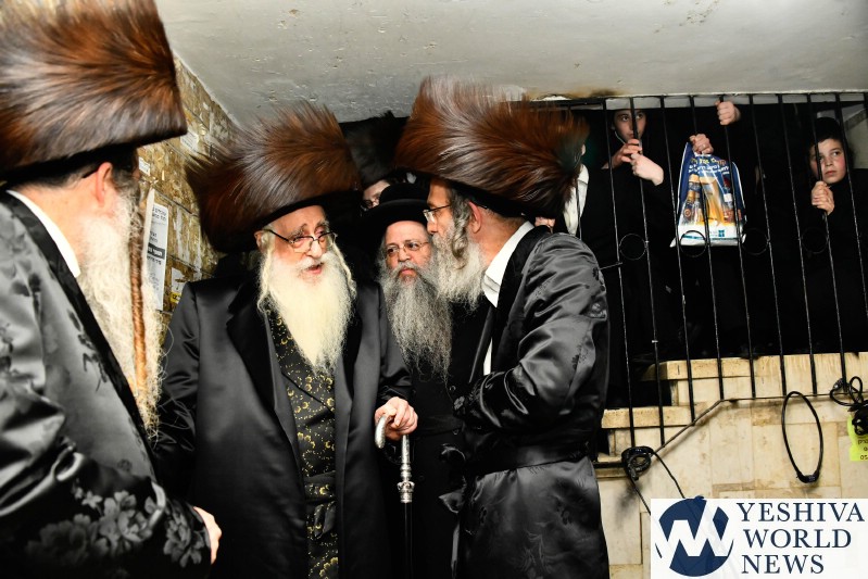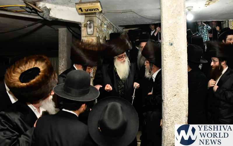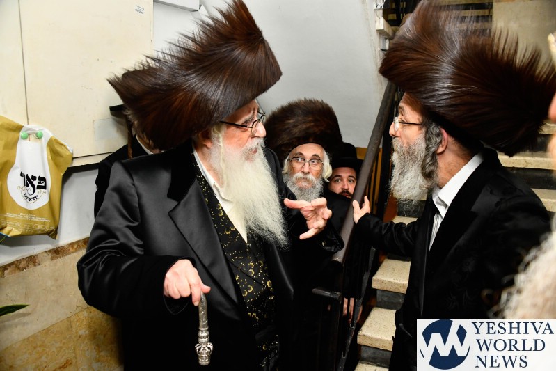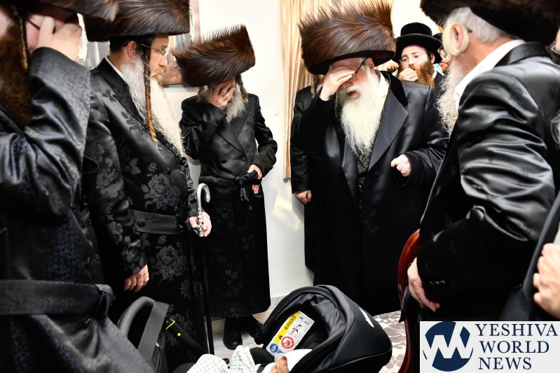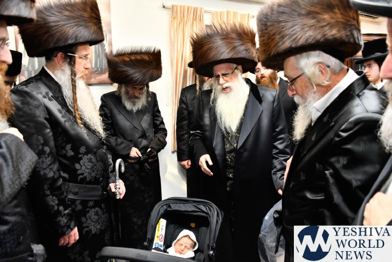 The Sanzer Rebbe participated in the Vacht Nacht celebration held for the grandson of Harav Elimelech Biderman, son of his son-in-law Harav Moshe Dovid Motzen — son of the Gaavad of Kiryas HaBa’al Shem Tov and son-in-law of the Shefa Chaim of Sanz, zt”l.