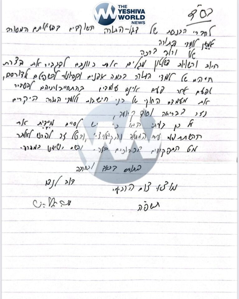 In a letter that was made public, Rav Dov Landau wrote with great pain: “Since the governing authorities are showing intentions to increasingly restrict the lives of Torah learners in various ways — through attempts to demean and crush them — and repeatedly fail to uphold their commitments to legally regulate the status of yeshiva students and dear Torah scholars, the crown of creation and the secret of its existence — it is therefore my opinion that participation in the government and coalition should be immediately terminated, including resigning without delay from all related roles. May Hashem rescue us swiftly.”