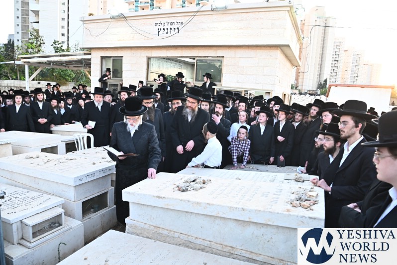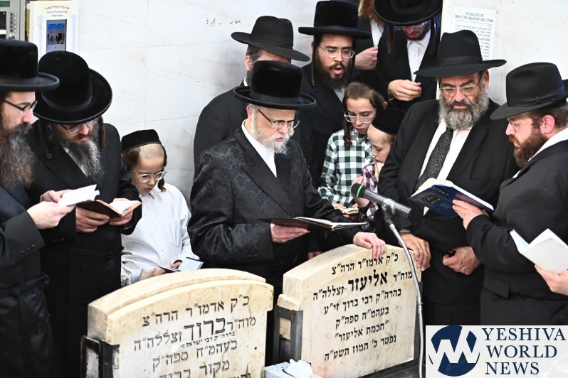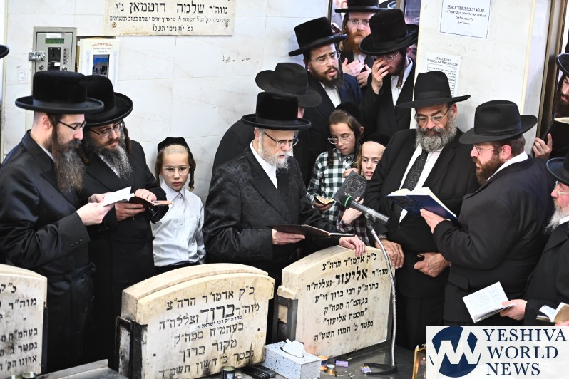 PHOTOS; Seret Vishnitz Rebbe At The Kever Of His Father On The 10th Yartzheit