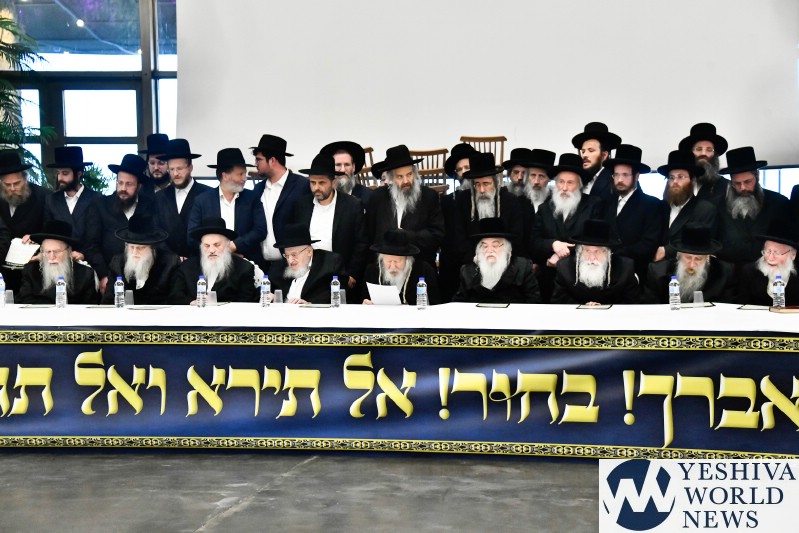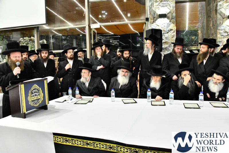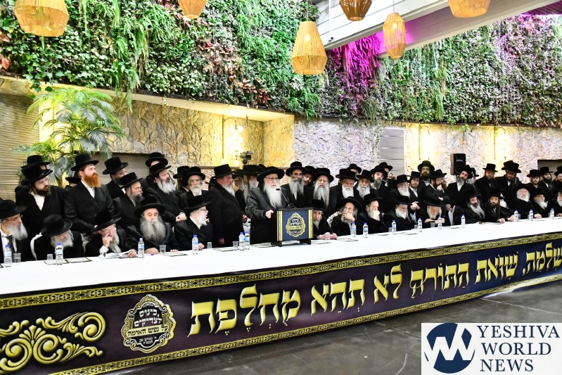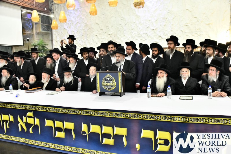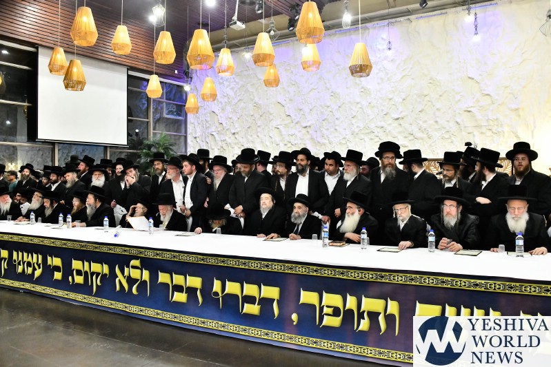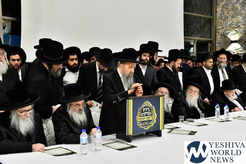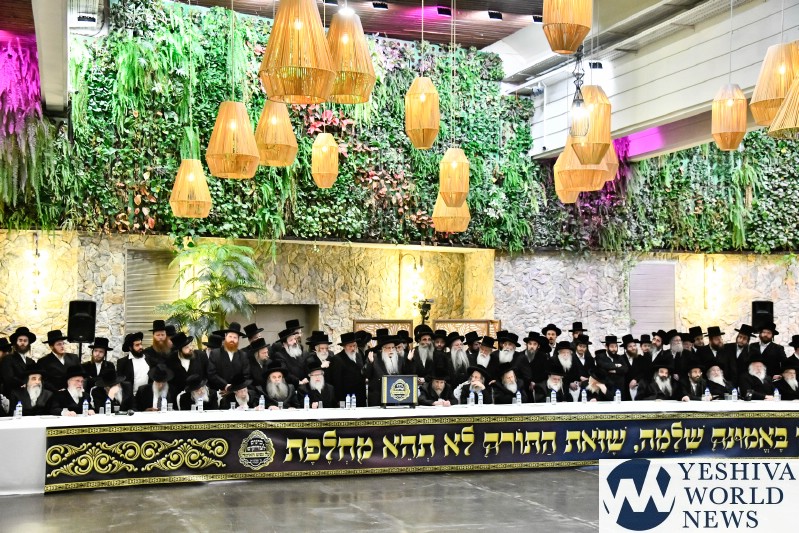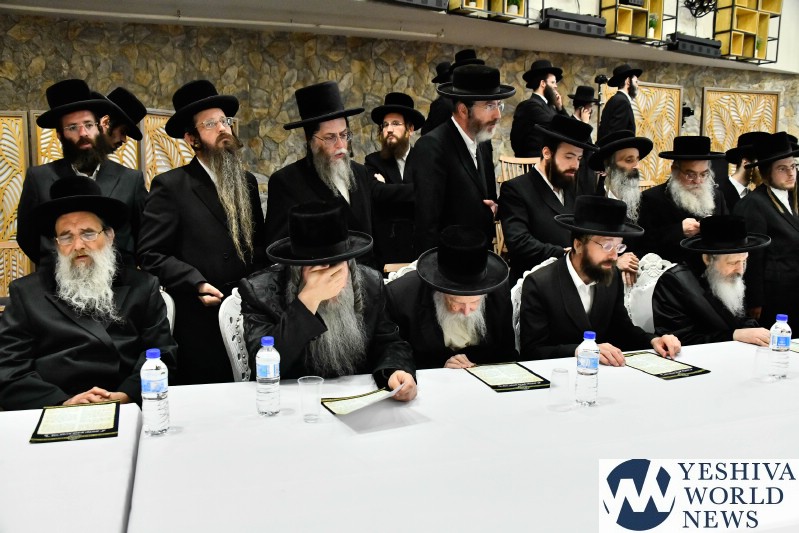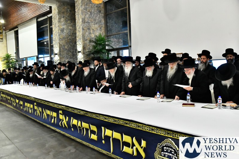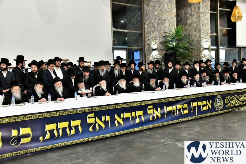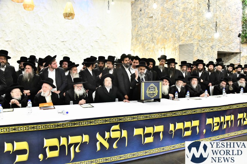 Attendees included the Rebbes of Ger, Vizhnitz, Sanz, Chernobyl, Mishkenos HaRo’im, Zvil, Skulen, Machnovka-Belz, and representatives of Skver, Bohush, Nadvorna, Modzitz, Rahmastrivka, Dorg, Tolna, Strikov, Harav Yaakov Meir Shechter of Breslov, Mashpia HaRav Biderman, and others. They were joined by Litvish roshei yeshiva and poskim, including Harav Moshe Tzadka, Harav Meir Tzvi Bergman, Harav Chaim Feinstein, Harav Yitzchok Zilberstein, Harav Moshe Brozovsky, and others.