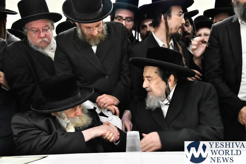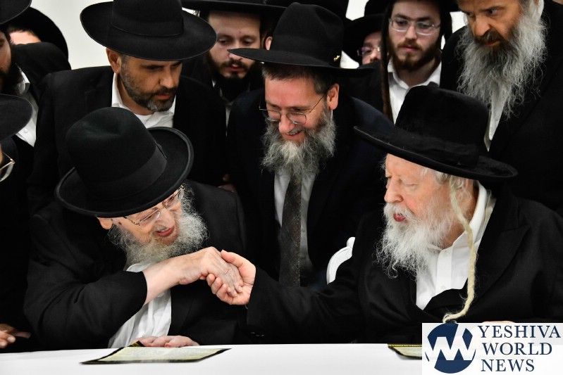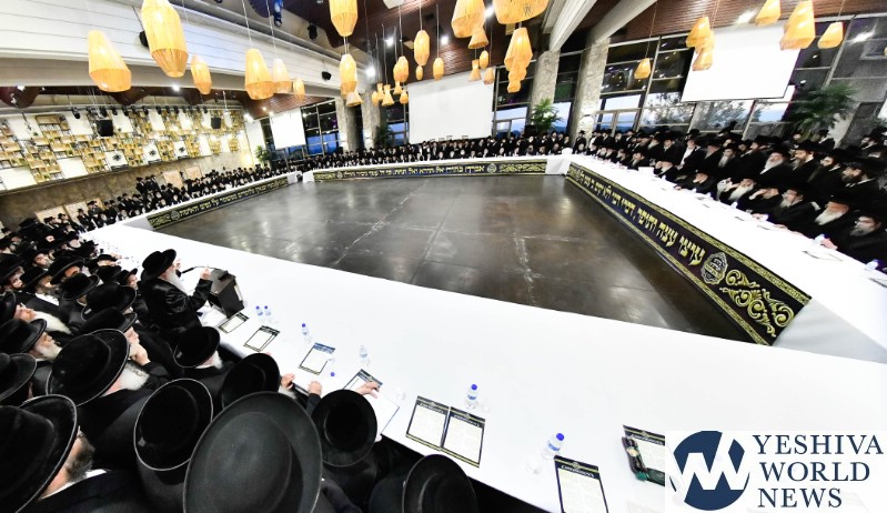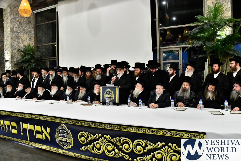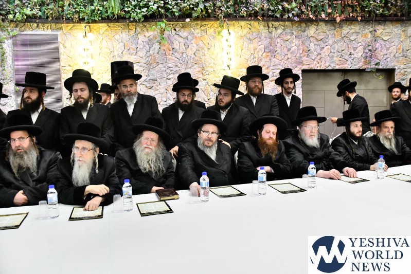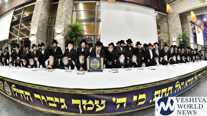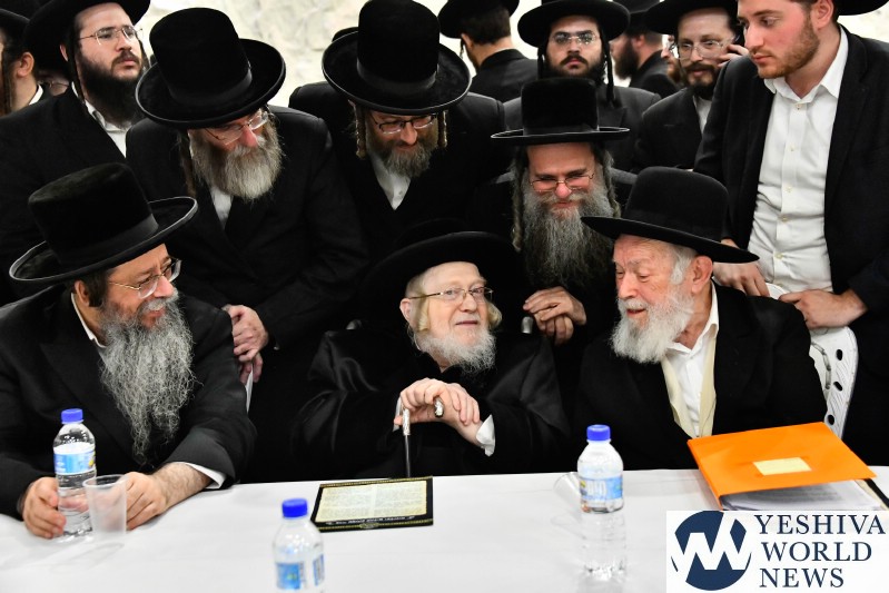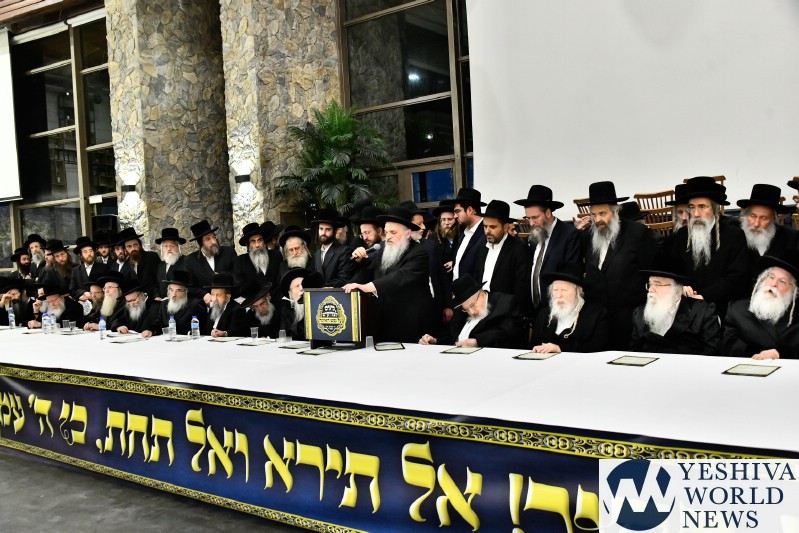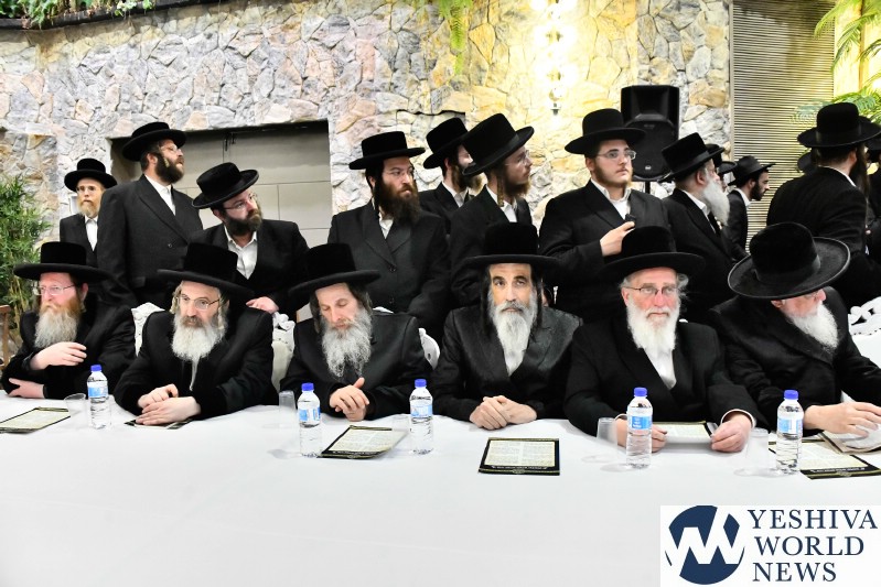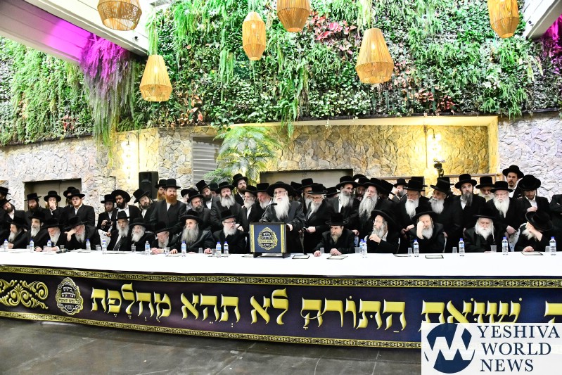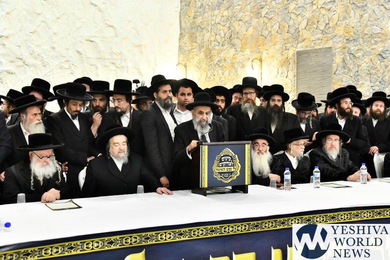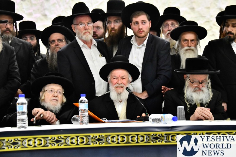 Attendees included the Rebbes of Ger, Vizhnitz, Sanz, Chernobyl, Mishkenos HaRo’im, Zvil, Skulen, Machnovka-Belz, and representatives of Skver, Bohush, Nadvorna, Modzitz, Rahmastrivka, Dorg, Tolna, Strikov, Harav Yaakov Meir Shechter of Breslov, Mashpia HaRav Biderman, and others. They were joined by Litvish roshei yeshiva and poskim, including Harav Moshe Tzadka, Harav Meir Tzvi Bergman, Harav Chaim Feinstein, Harav Yitzchok Zilberstein, Harav Moshe Brozovsky, and others.
