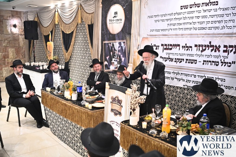 In an inspiring and emotional event, a Siyum Mishnayos was held along with the dedication of the “Taharos” branch of the Mishnas Yaakov Eliezer Kollel, which will now bear the name of Reb Yaakov Eliezer Rajchenbach Zt”l — one of the foremost builders of Torah, who devoted his life to supporting Torah and incredible Chesed and philanthropy – whose third Yartzheit is now being marked.