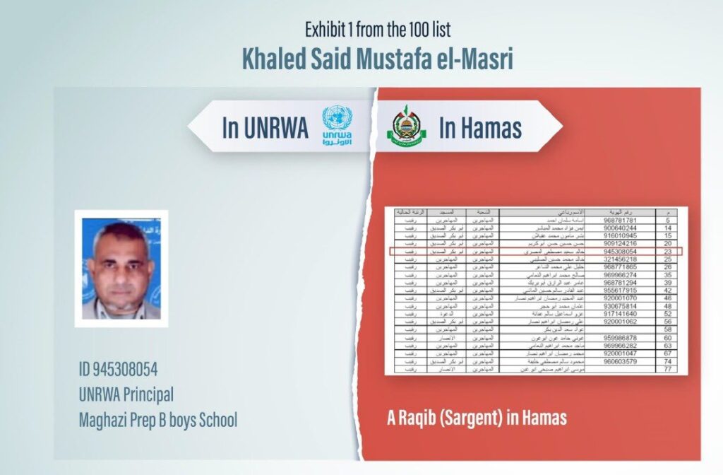 3. Khaled Said Mustafa el-Masri, another UNRWA principal of a school under which a Hamas terror tunnel was found. I provided documents proving that he is a Hamas commander and the information was transferred to UN officials.