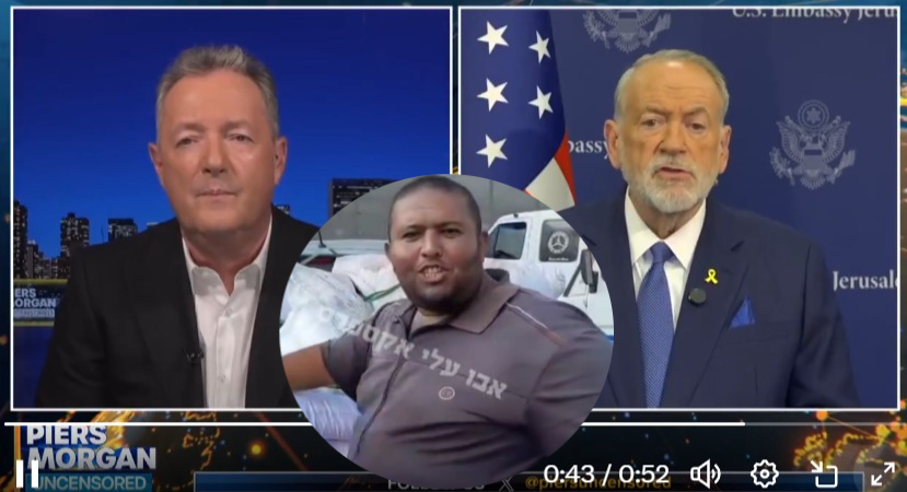 US Ambassador to Israel Mike Huckabee slammed the Hamas terror organization for its exploitation of “humanitarian aid” brought into Gaza during an interview with Piers Morgan on Monday.