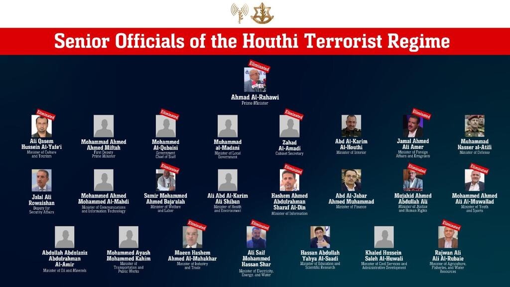 The IDF confirmed this past Thursday that 12 senior Houthi officials were eliminated in the attack, dubbed Operation Lucky Drop.