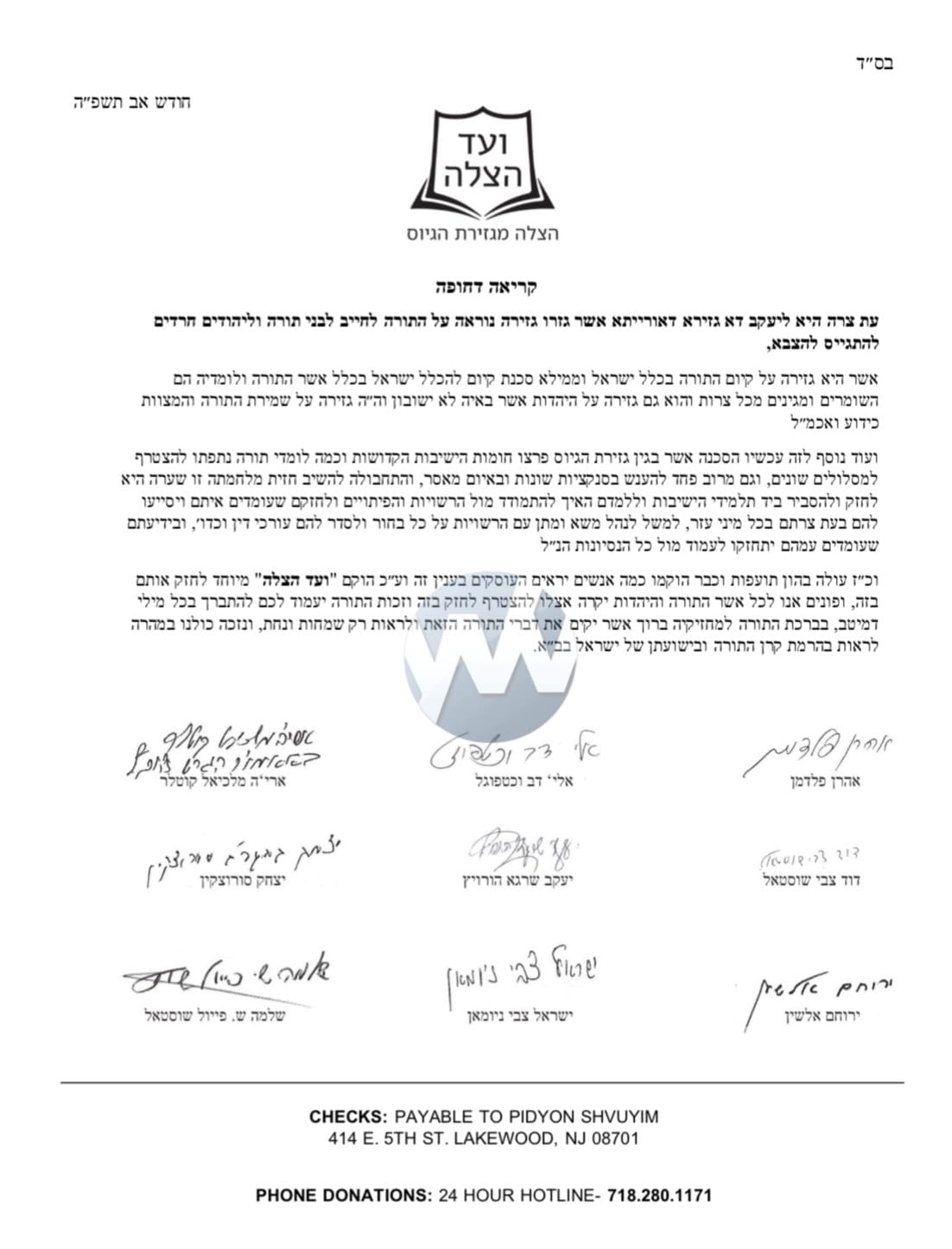 “All who cherish Torah and Yiddishkeit are called upon to join in this effort,” the Gedolim urged, “to strengthen the hands of those battling for the future of Torah, and to be zocheh to the bracha of ‘Baruch asher yakim es divrei haTorah hazos.’”