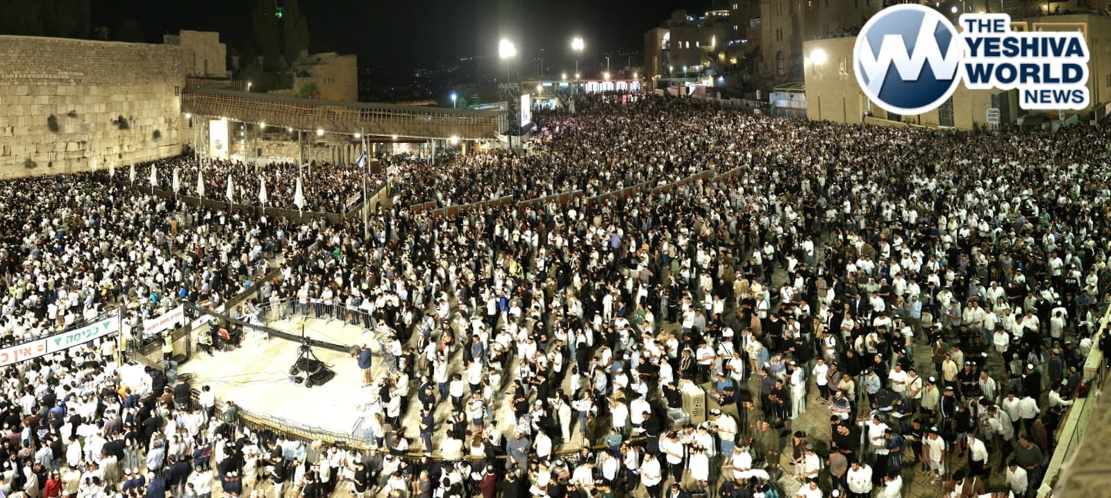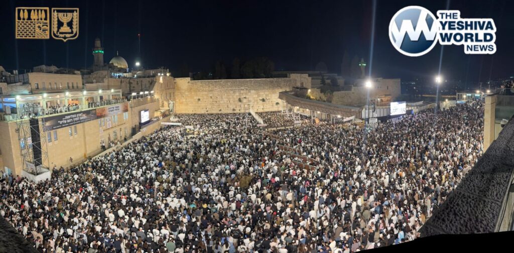 Over 50,000 Yidden packed the Kosel plaza on Sunday night, Leil Rosh Hashanah 5786, for Slichos, marking the climax of a month during which more than one million mispallelim visited the Kosel since the beginning of Elul.