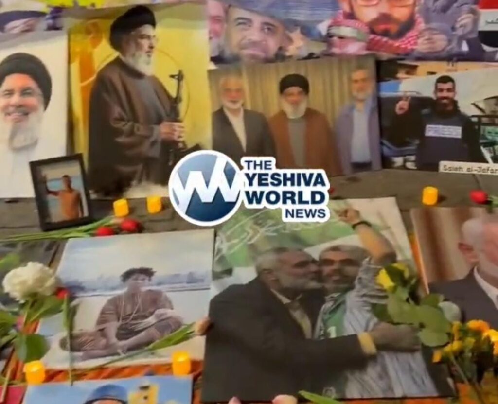 The Bronx Anti-War Coalition — a far-left, self-described “anti-imperialist” group — organized the event, which featured a makeshift memorial with flowers, candles, a Quran, and images of Sinwar and other terrorist leaders, including Hezbollah’s Hassan Nasrallah and senior Iranian officials. A banner reading “Glory to the Axis of Resistance” hung above the display, alongside Hamas insignia, according to a video posted by the group.